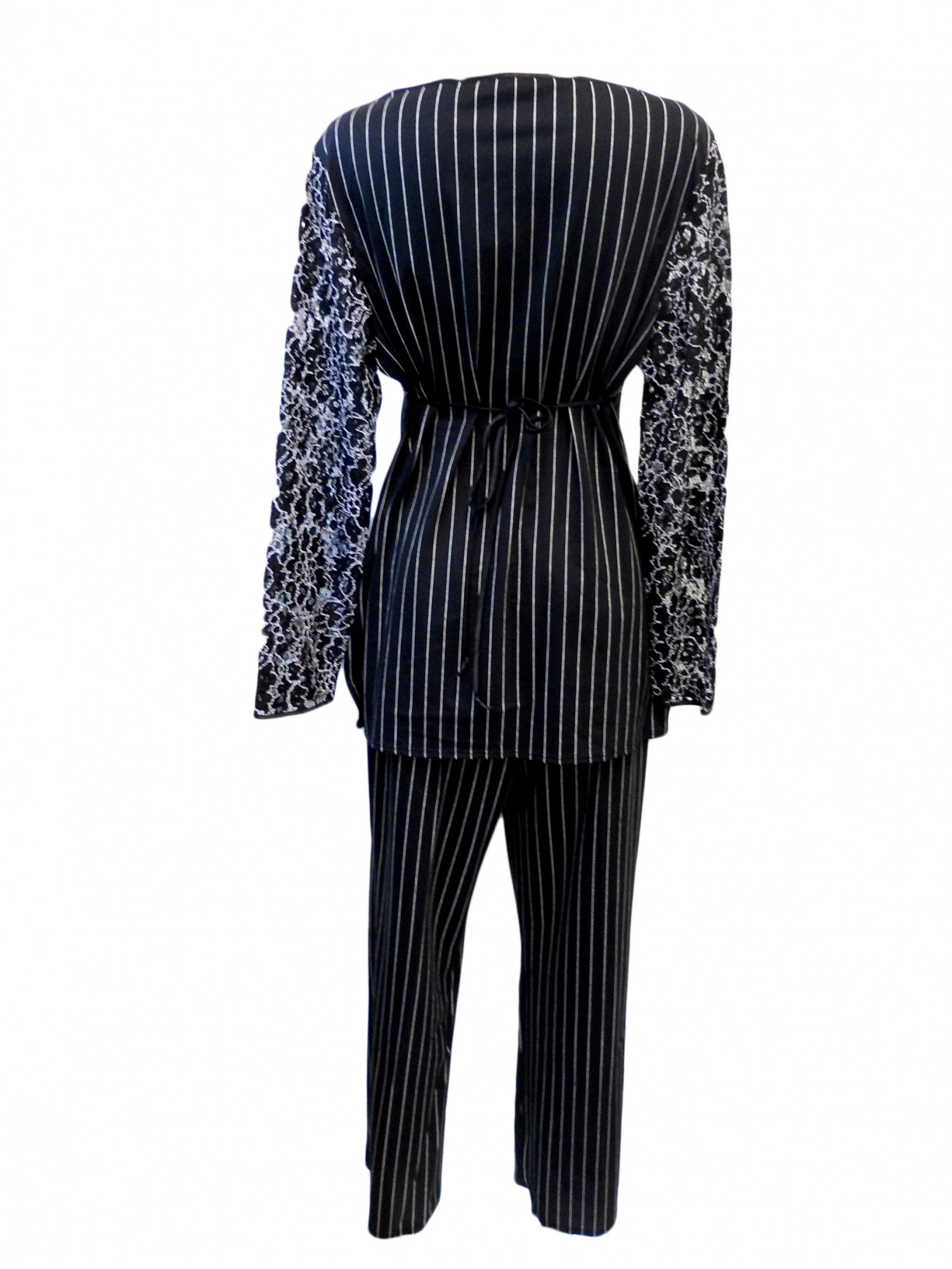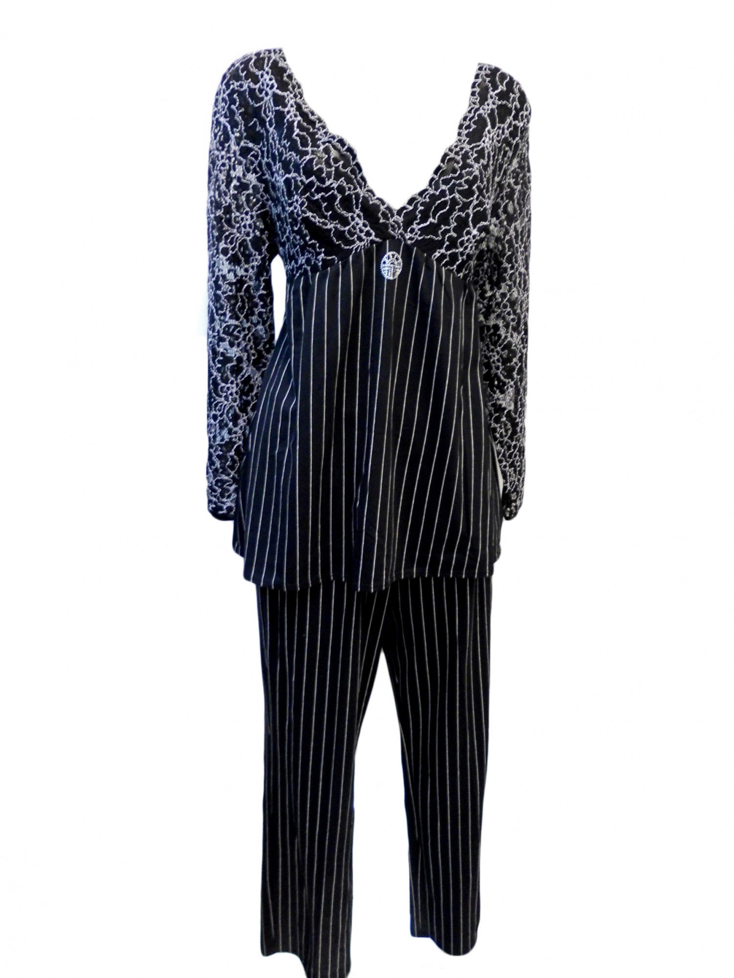 Dámské pyžamo 3211132 - Féraud s dlouhým rukávem a dlouhou nohavicí, vrchní díl je kombinovaný ozdobnou krajkou. Složení: 100% bavlna.