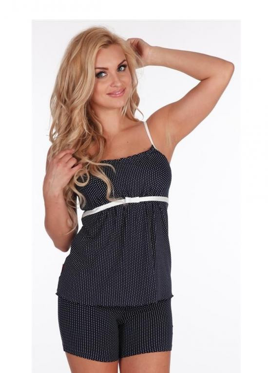 Dámské pyžamo na ramínkách, s krátkými šortkami. Ušité z 94% viskozy a 6% elastanu.