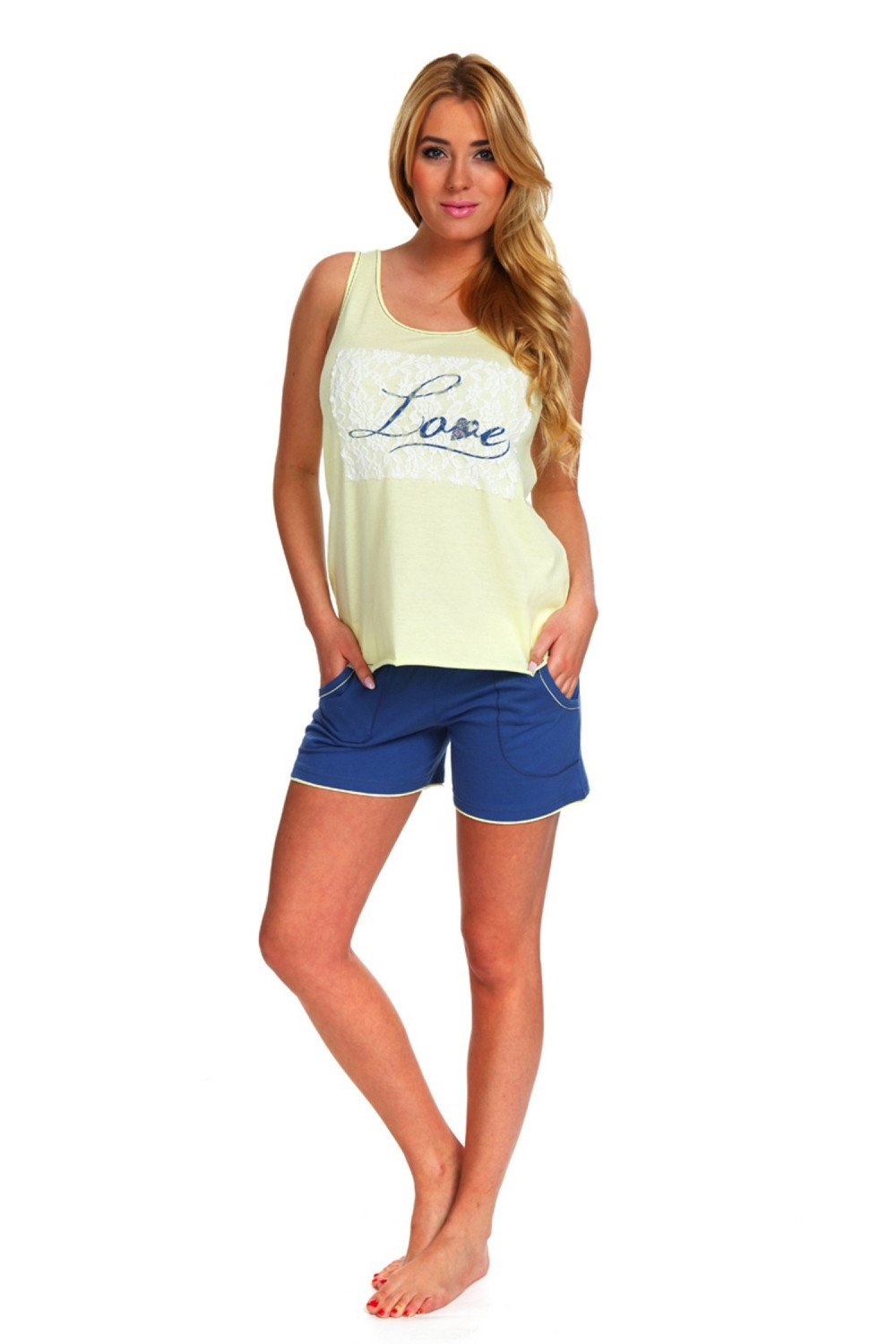 Módní dámské pyžamo Love Italian Fashion - žluté tričko s krátkým rukávem.