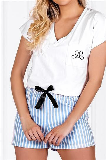 Produkt Dámské pyžamo Nicole Bílo-modrá - Momenti Per Me prodáváme v těchto velikostech: La barvách bílá/modrá
