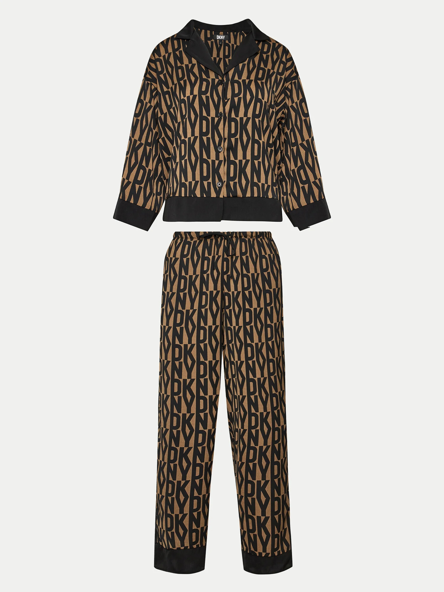 Dámské pyžamo YI90017 202 hnědé s potiskem - DKNY