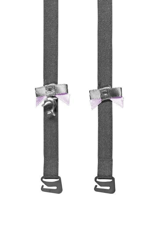 Dámská ozdobná ramínka v šedé barvě. Ramínka jsou zdobená mašličkou a přívěskem delfínka.