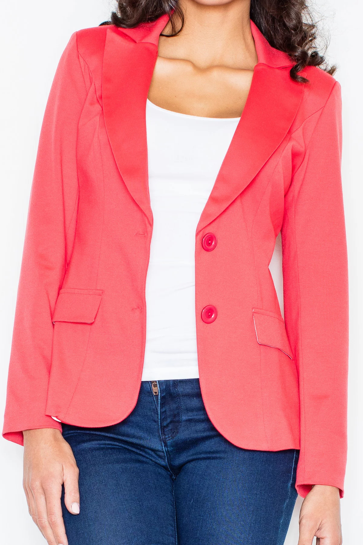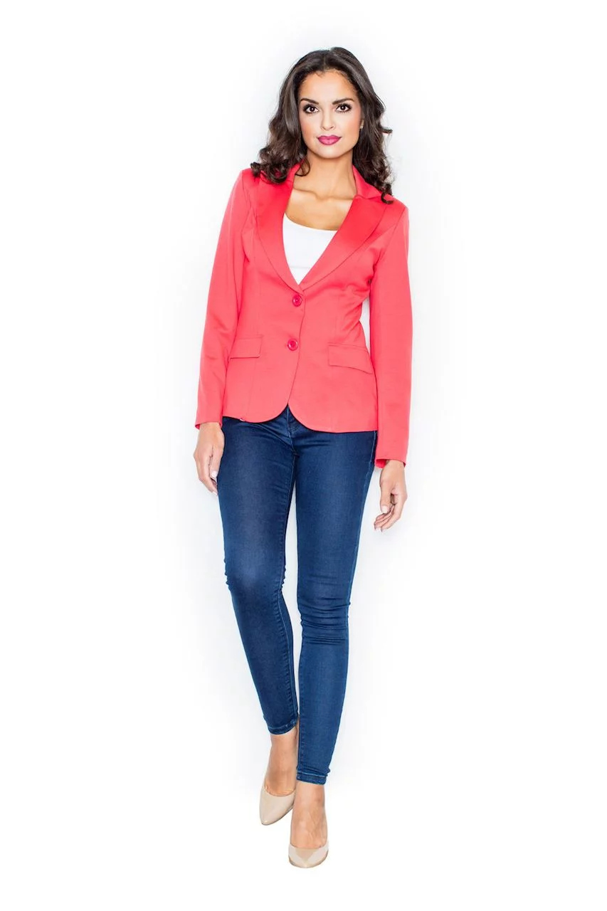 Produkt Dámské sako M085 korálová - Figl prodáváme v těchto velikostech: 38/Ma barvách korálová
