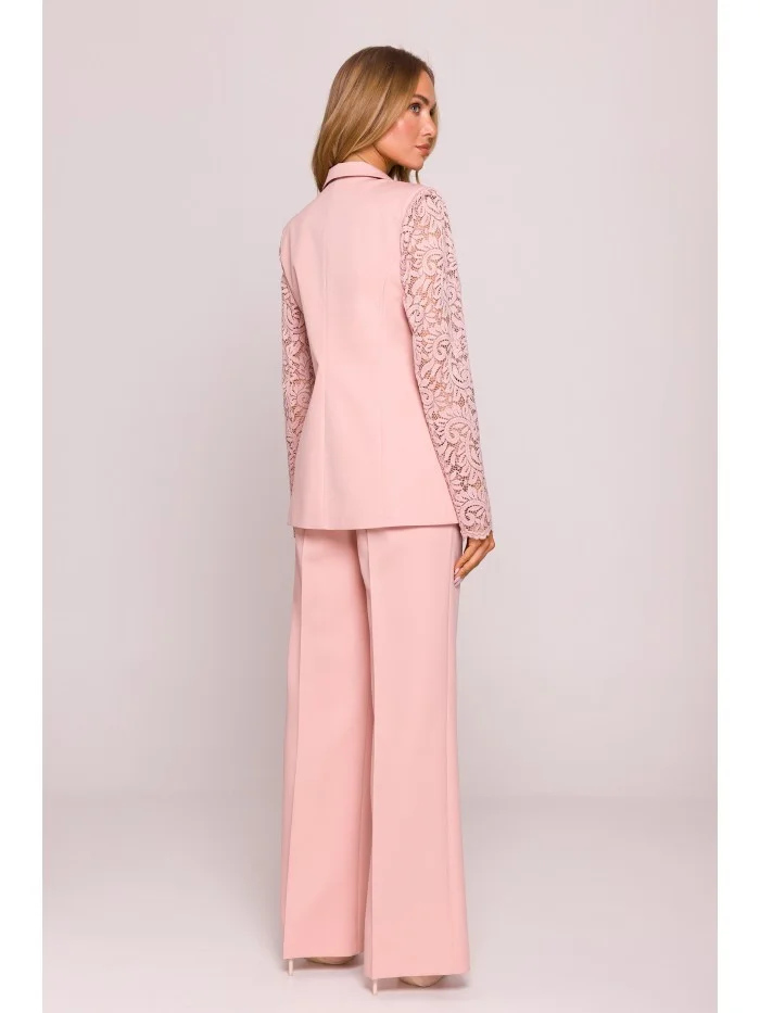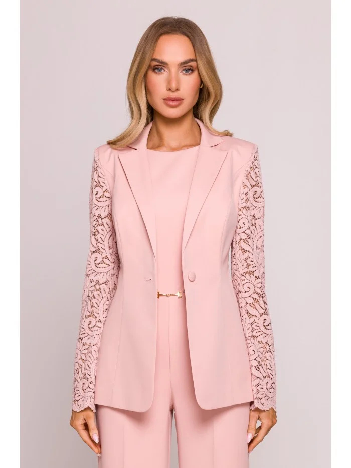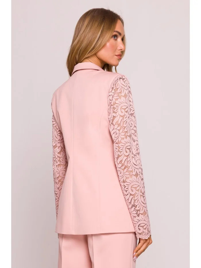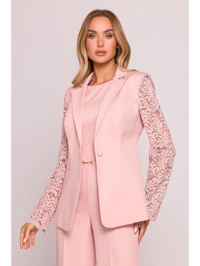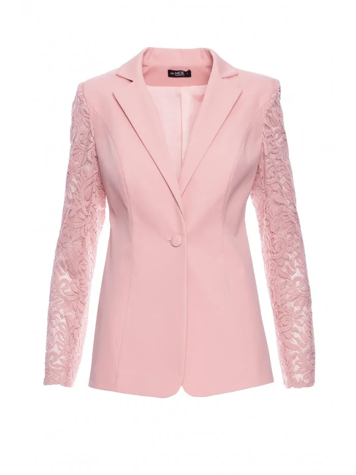 Dámské sako s krajkovými rukávy M865 Pudr růžová - MOE