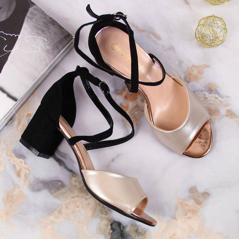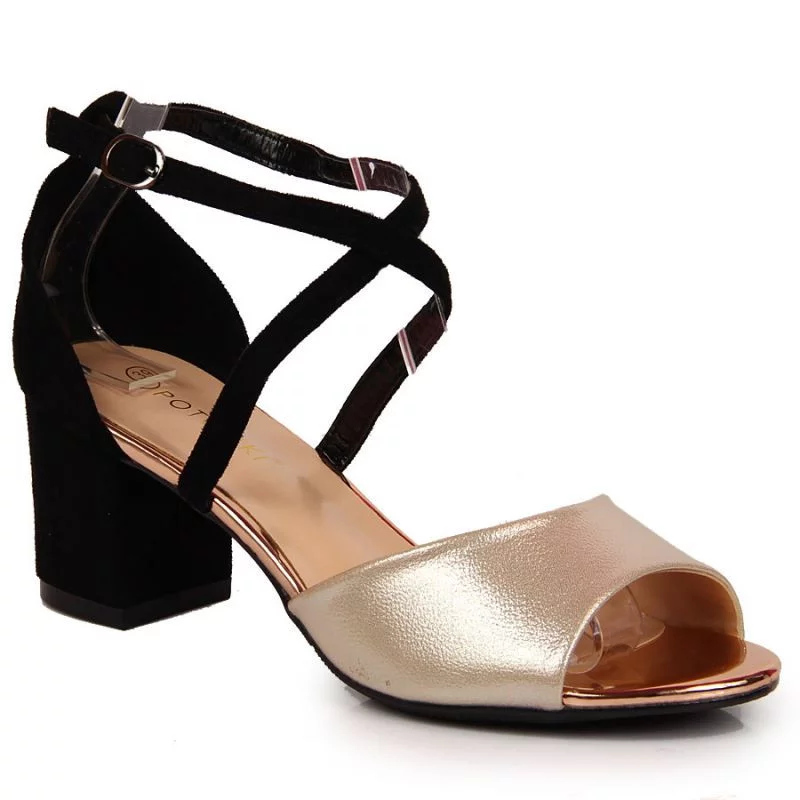 WOL68 černé a zlaté sandály na jehlovém podpatku značky Potocki