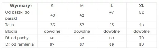 | Od podpaží k podpaží | 40 | 42 | 47 | 52 | 57 |