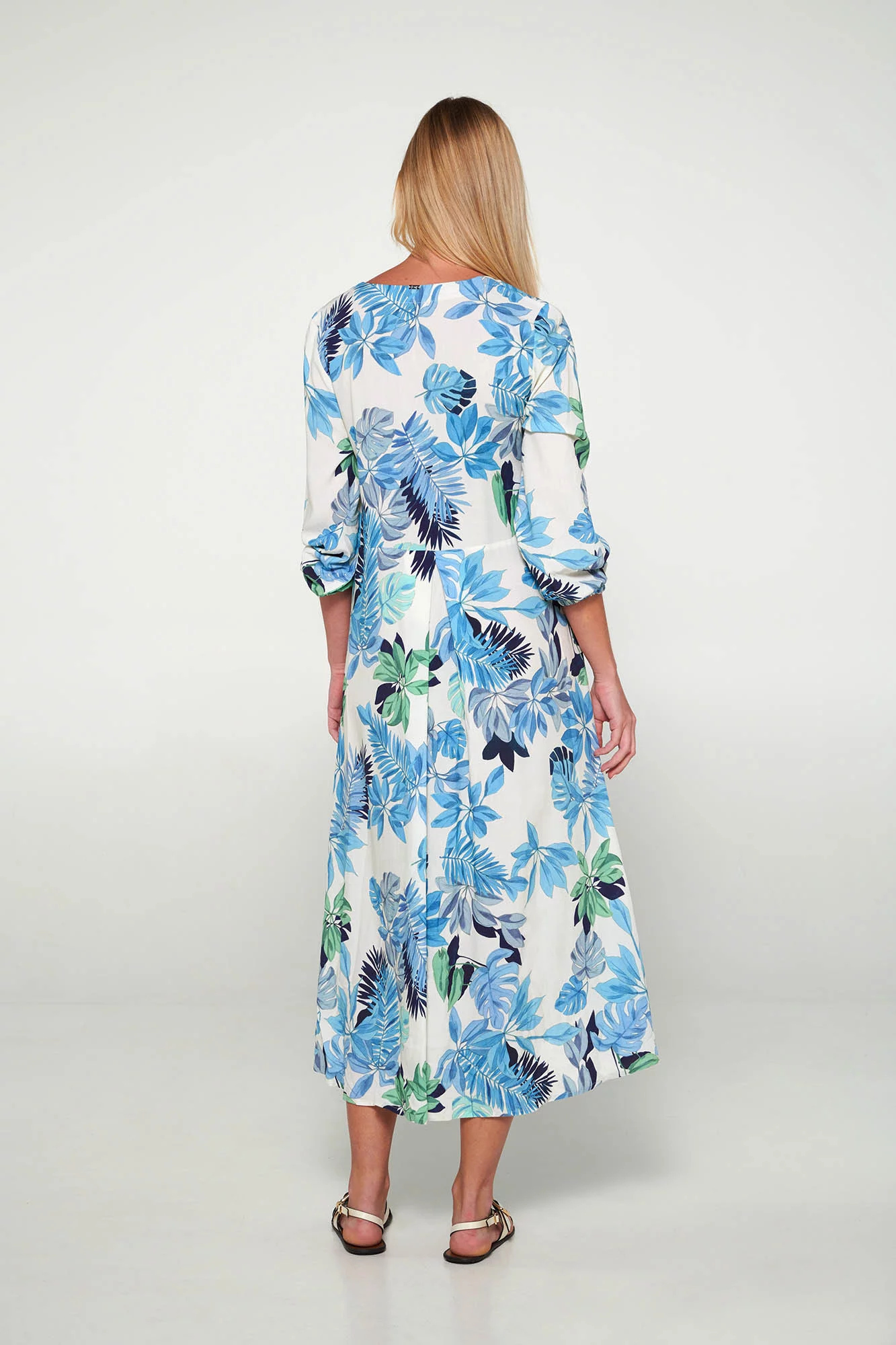 Dámské šaty 20417 Ecru s modro zelenou potisk - Vamp