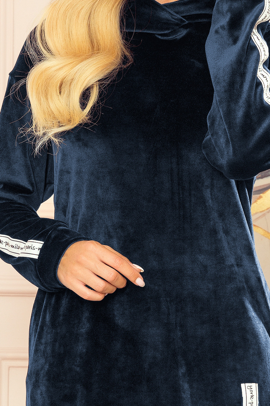 Sportovní šaty 322-4 Numoco - s kapucí - volnější střih - délka sukně ke kolenům - dlouhé rukávy