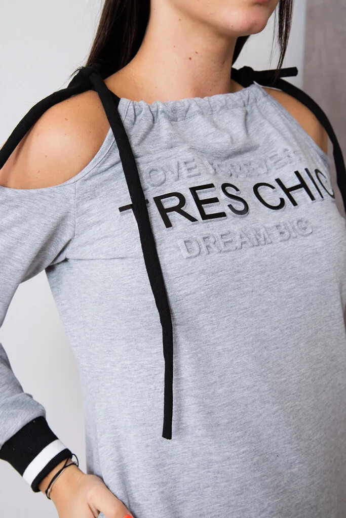 Dámské volnočasové šaty s plastickými nápisy, s odhalenými rameny a se zavazováním na šňůrky. Vhodné pro vel. S, M a L.