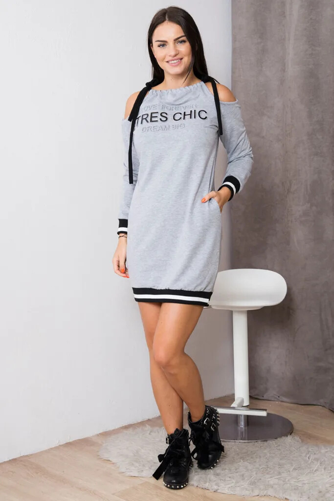 Produkt Dámské šaty 62182 Šedá - Kesi prodáváme v těchto velikostech: unia barvách šedá s potiskem