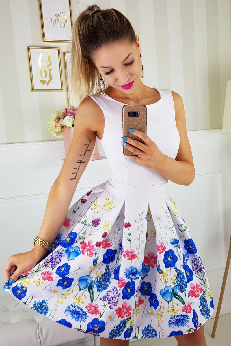 Produkt Dámské šaty 2200 květinový vzor - Bicotone prodáváme v těchto velikostech: 36a barvách krémová s květinovým vzorem