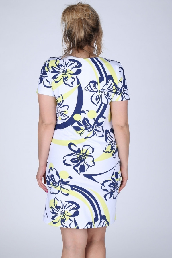Dámské šaty pro plnoštíhlé. Nádherné šaty v krásných barvách. Tento model šatů má krátký rukávy a kulatý výstřih. Délka šatů je nad kolena. Tento model můžete obléct na letní párty, oslavy či jen tak do města.