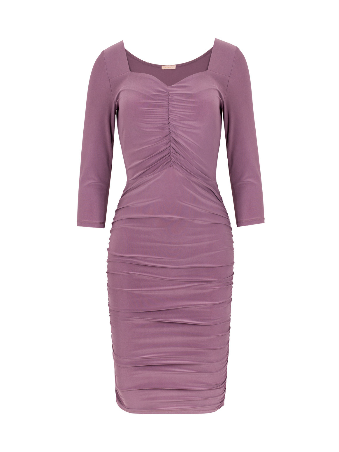 Nádherné ve všech ohledech. Tyto šaty z pružného úpletu s pěkným výstřihem jsou elegantní a ohromující díky svému střihu, který obepíná křivky a má řasené detaily, midi délku a princeznovský výstřih.