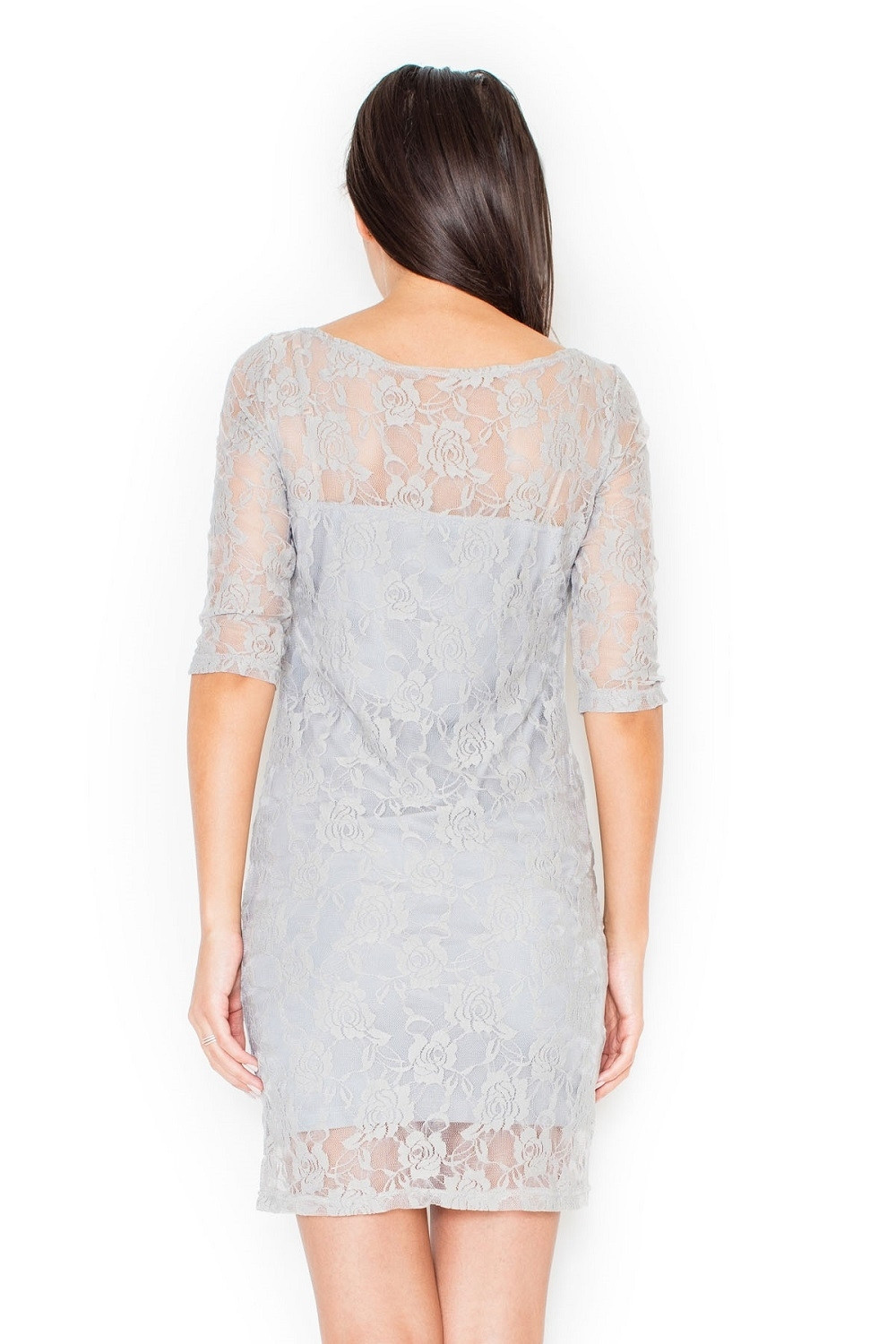 Nevšední romanticky působící šaty z příjemného materiálu s květinovým vzorem K109 KATRUS mají rukáv těsně pod loket a délku nad kolena.