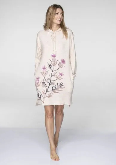 Odpočinkové dámské šaty - noční košile, která je vyrobená z melanžové viskózové tkaniny se strukturou svetru.