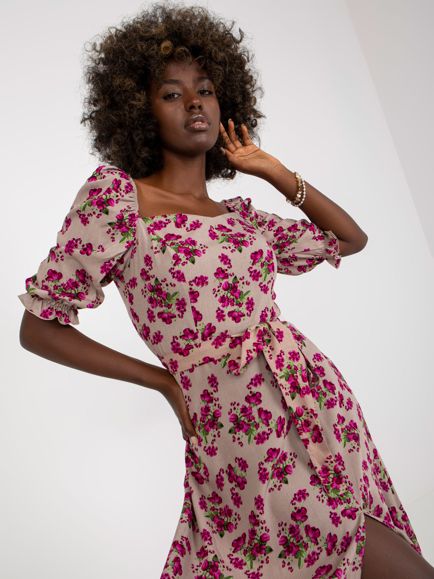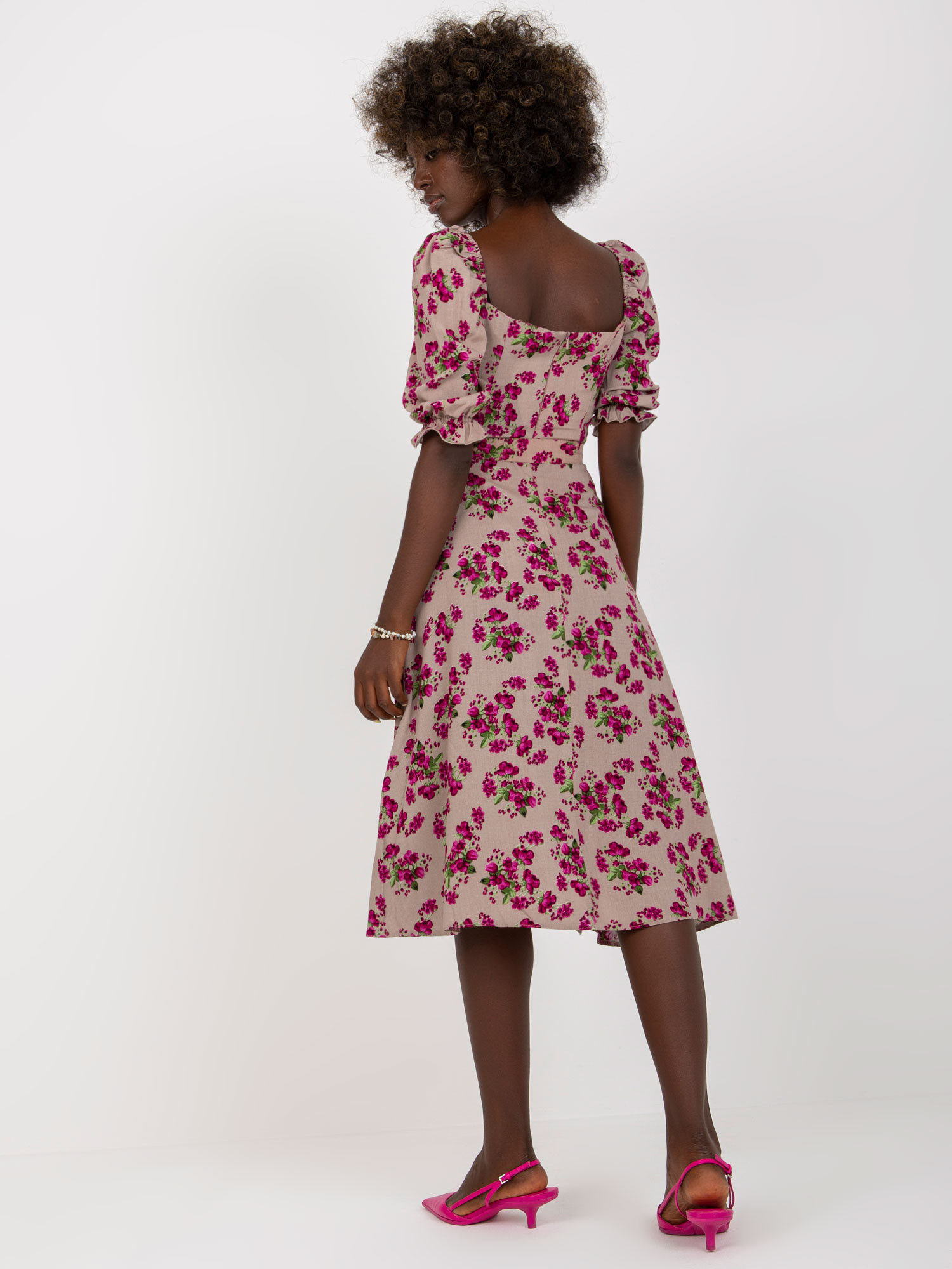 Modelka má na sobě velikost 36. Rozměry modelky: výška 168 cm, prsa 82 cm, pas 62 cm, boky 93 cm.