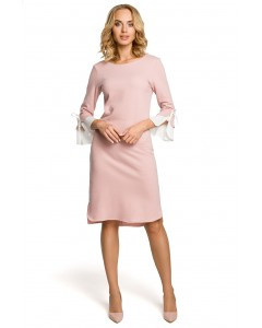 Produkt Dámské šaty M327 - MOE prodáváme v těchto velikostech: 40, XL-42a barvách pudrovo-růžová