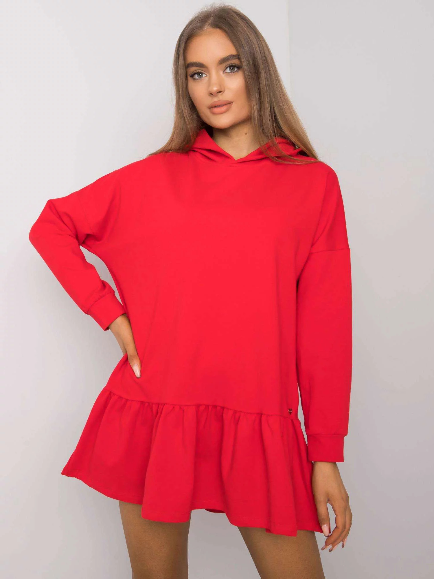 Červené bavlněné šaty s kapucí.