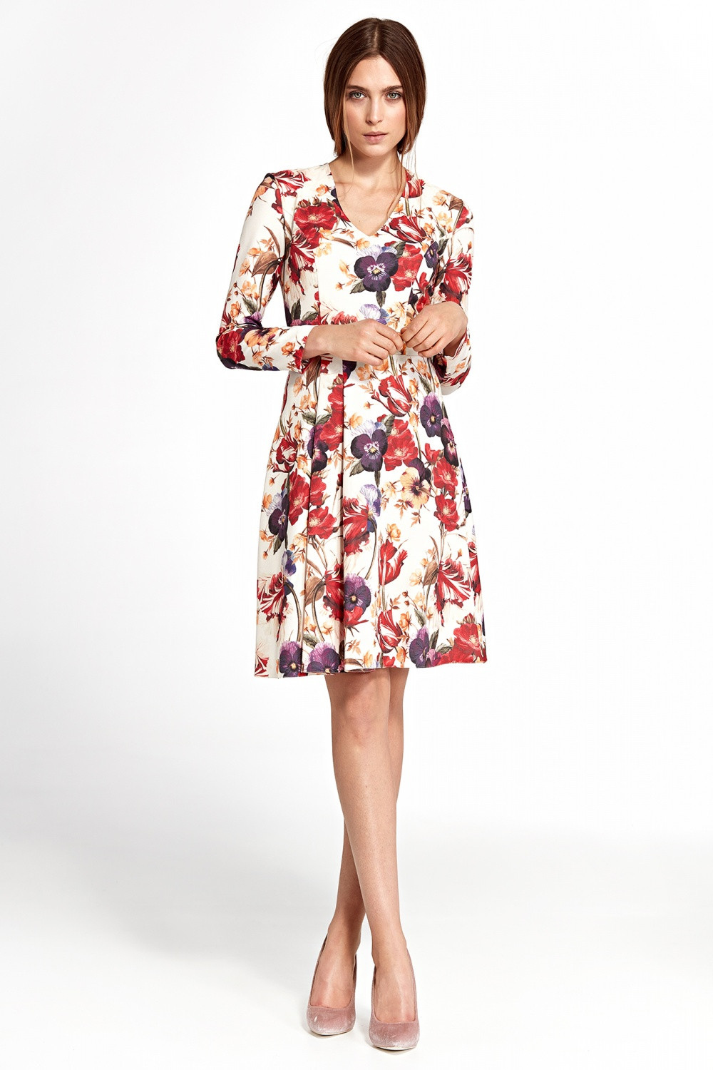 Produkt Dámské šaty S109 - Nife prodáváme v těchto velikostech: 42a barvách ecru s květy