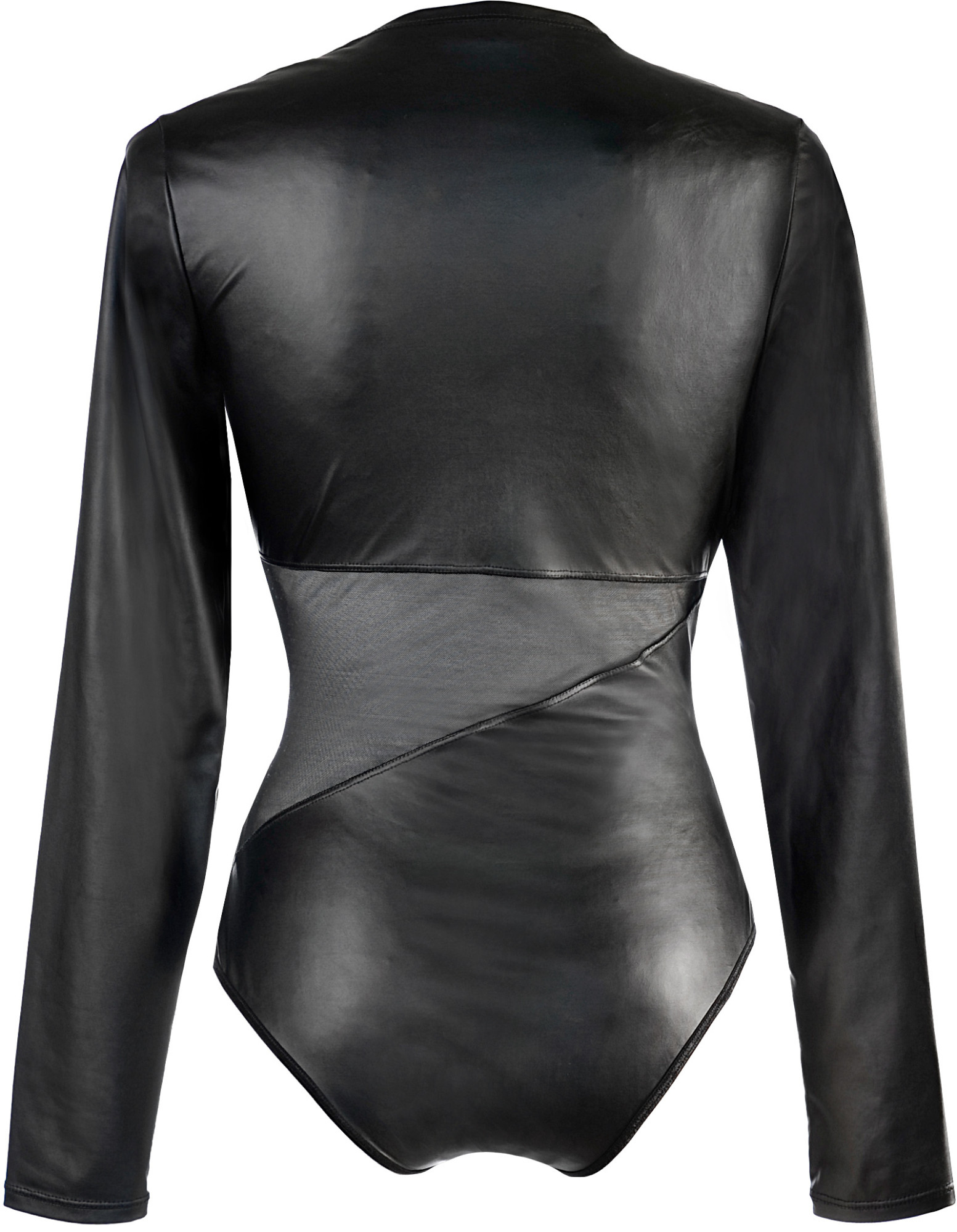Nekompromisní a velmi ženské body z černého latexu je odvážnou nabídkou pro ženy, které se nebojí odhalit své přednosti. Tento kousek šatníku poslouží nejen jako spodní prádlo, ale bude se hodit i k sukni nebo kalhotám na míru. Horní a střední část modelu tvoří vsadky z tenkého tylu. Tělo se zapíná pomocí přítlačných čepů.