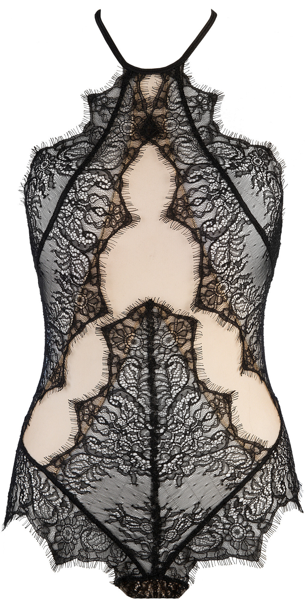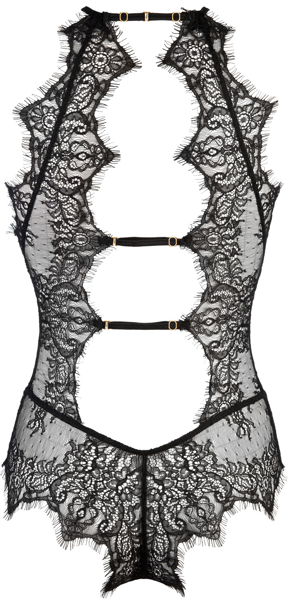 Černé romantické body V-9490 je kombinací klasické černé a jemných, ale zajímavých béžových průstřihů. Krajkové zdobení vám umožní vychutnat si pohled na hladkou pokožku, zatímco ženský vzor a neobvyklé průstřihy na zádech podtrhují svůdnost tohoto modelu. Model se zapíná u krku a v rozkroku, bez drátků s nastavitelnými popruhy.