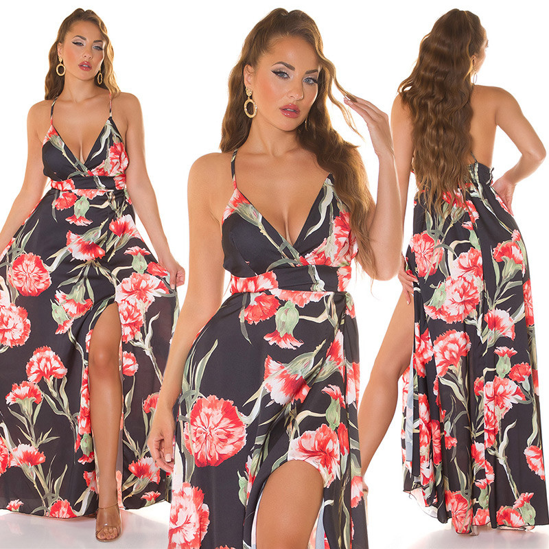 Dámské letní dlouhé šaty, s rozparkem. Na poprsí vyztužené, bez kostic.