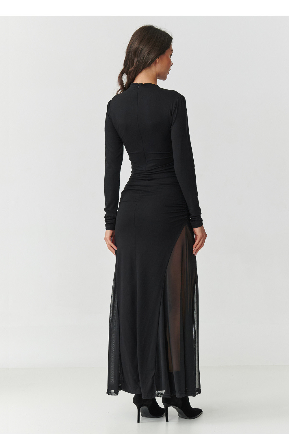 Objevte neuvěřitelně ženské a elegantní maxi šaty, vytvořené pro ženy, které oceňují klasiku s nádechem smyslnosti. Přizpůsobený střih krásně zdůrazňuje postavu, vystavujíce ženské tvary jemným, ale výrazným způsobem. Hluboké a průhledné vložky z tylu po stranách dodávají celému outfitu lehkost a sex appeal a výjimečný charakter. Zakrytý, klasický výstřih je poklonou nadčasové eleganci, vyvažuje odvážnější prvky šatů a dokonale zdůrazňuje linii krku a ramen. Právě tento kontrast dělá celkový dojem stylovým, elegantním a trochou tajemným. Na zádech šatů je diskrétní, skrytý zip, který zajišťuje pohodlné oblékání a perfektní přizpůsobení postavě. Jedná se o praktické řešení, které neodvádí pozornost od efektního střihu, a zároveň zajišťuje pohodlí nošení. Šaty jsou k dostání pouze v klasické, nadčasové černé barvě, která zdůrazňuje jejich eleganci a univerzální charakter. Jedná se o odstín, který nikdy nevyjde z módy, zúžuje postavu a dělá, že outfit vždy vypadá elegantně. Jedná se o ideální návrh na speciální příležitosti, kdy chcete cítit krásně, sebevědomě a výjimečně. Nejde jen o šaty, je to způsob, jak vyjádřit sebe sama.