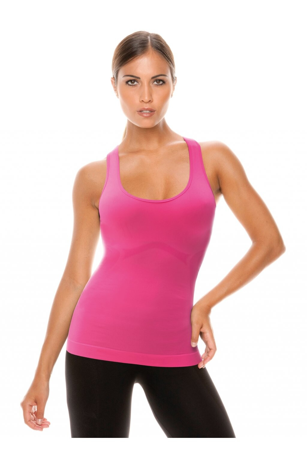 Bezešvé dámské sportovní tílko s velmi dobrým podpůrným, stabilizačním a vykreslujícím efektem díky vnitřnímu vplétanému topu. Americký střih a široká ramínka ponechávají maximální volnost ramenům.Technický úplet zaručuje prodyšnost a suchou pokožku, přispívá k odvodu potu a zanechává pocit lehosti a svěžesti.