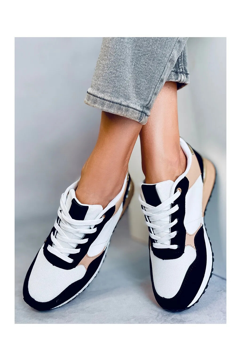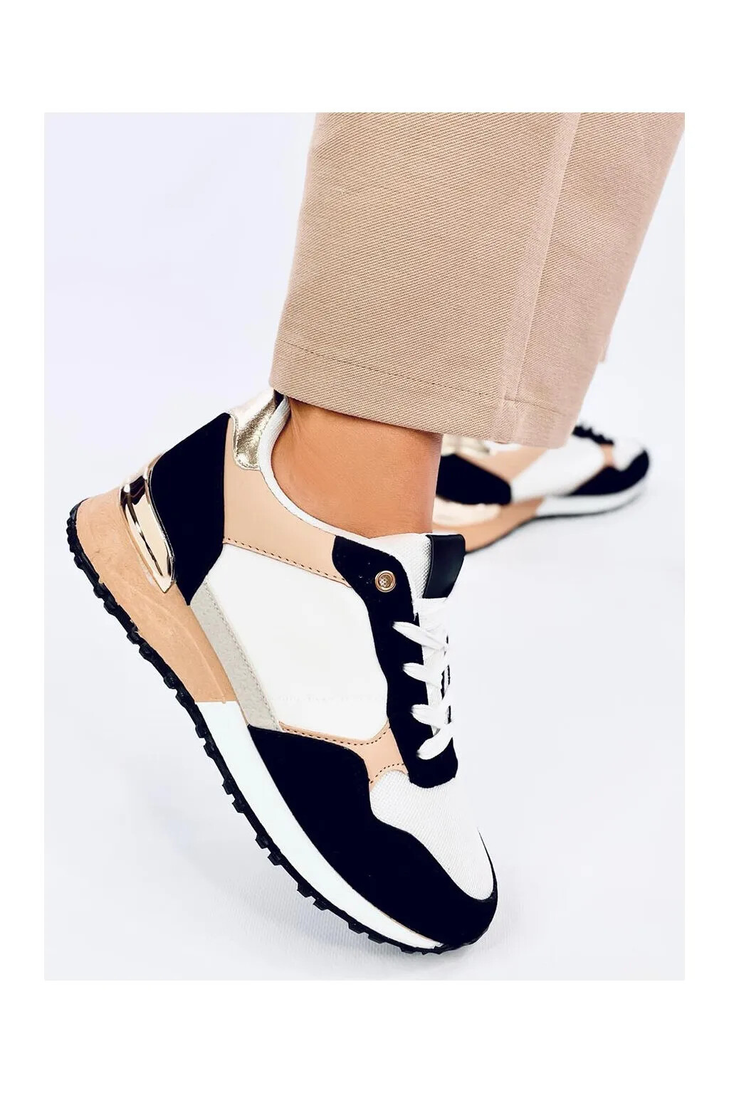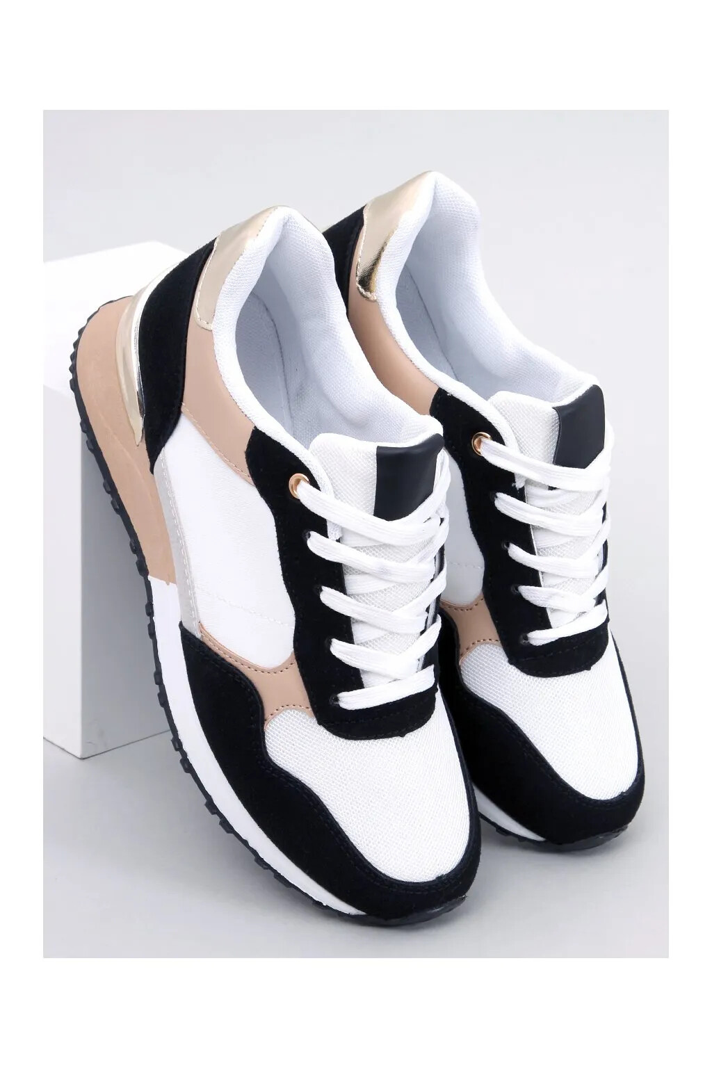 Dámské sportovní boty BB2216 Bílo-černo-béžová - Inello