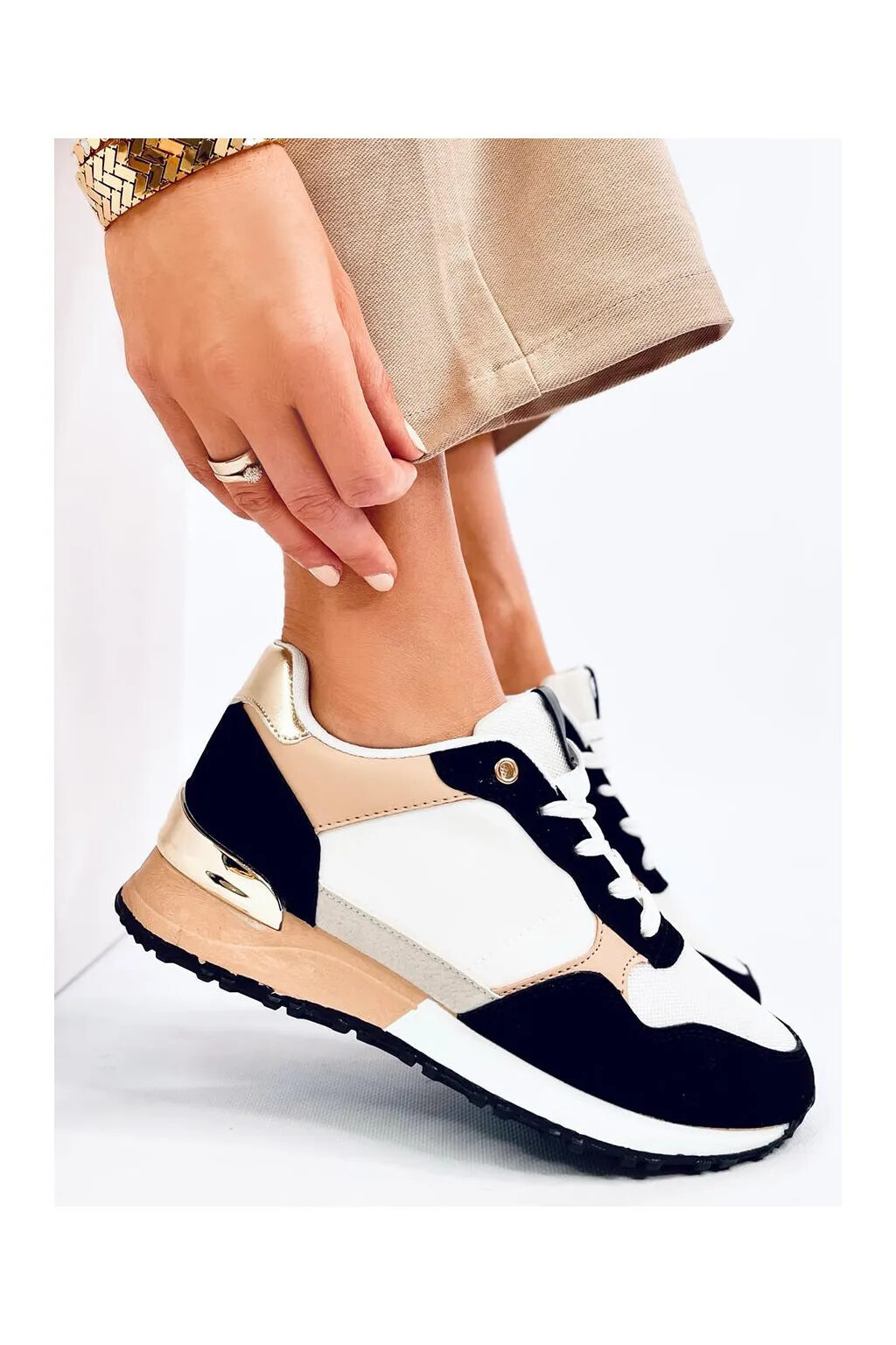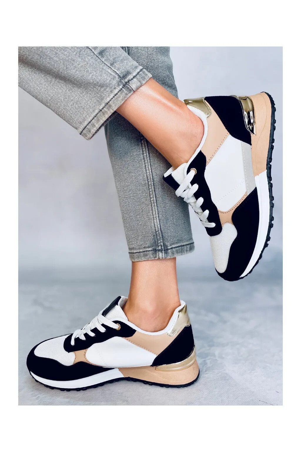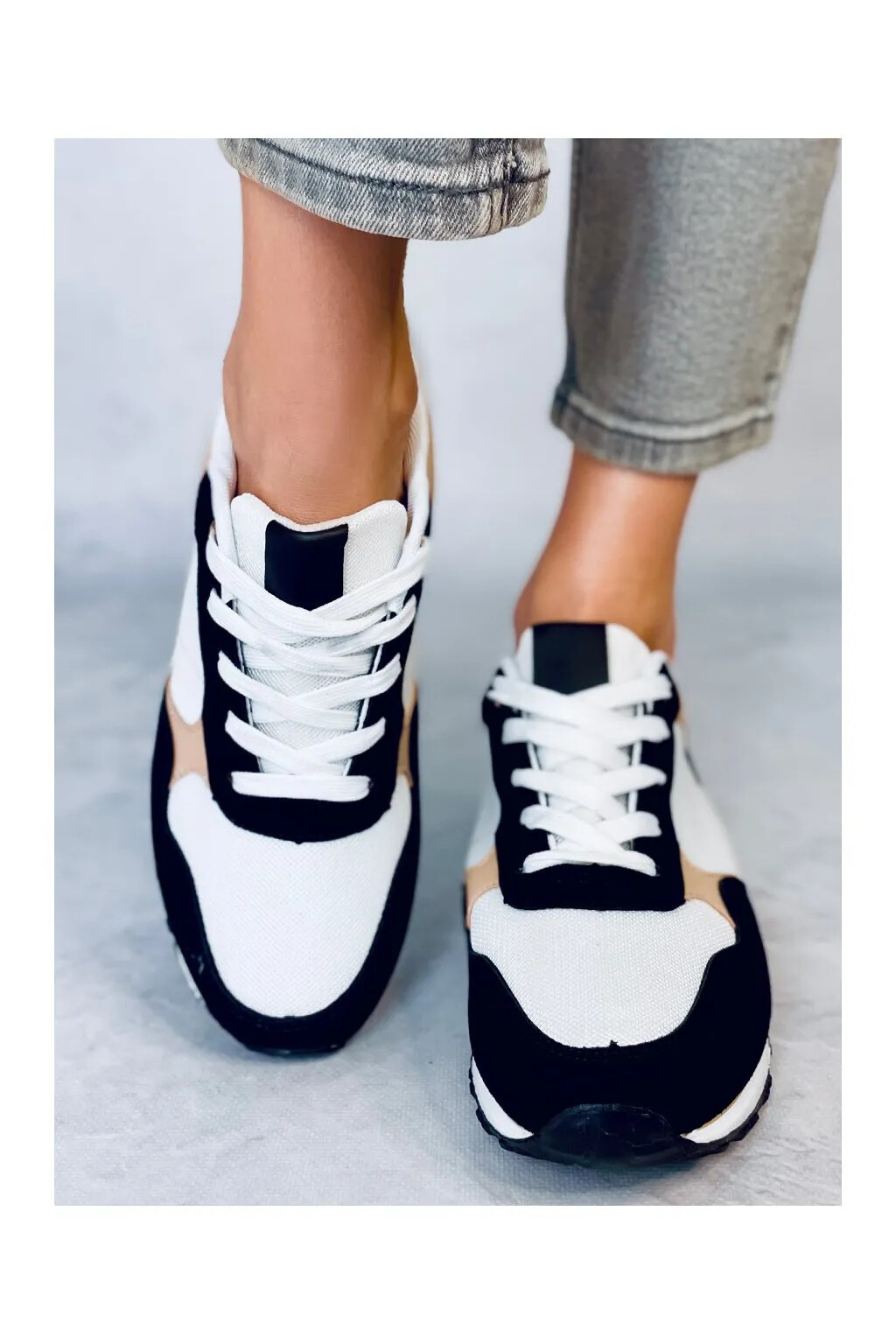 Dámské sportovní boty BB2216 Bílo-černo-béžová - Inello