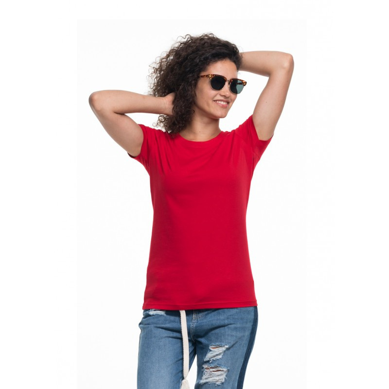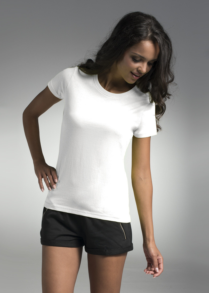 Dámské bavlněné tričko. Má elastické lemy, dvojté švy, projmuté v Podvazkový páse. 100% bavlna poločesaná, gramáž 160/m2. Promostars je jediným výrobcem textilu, který se hodí jak na oblečení na běžné nošení, na sport, jako pracovní nebo jako reklamní.