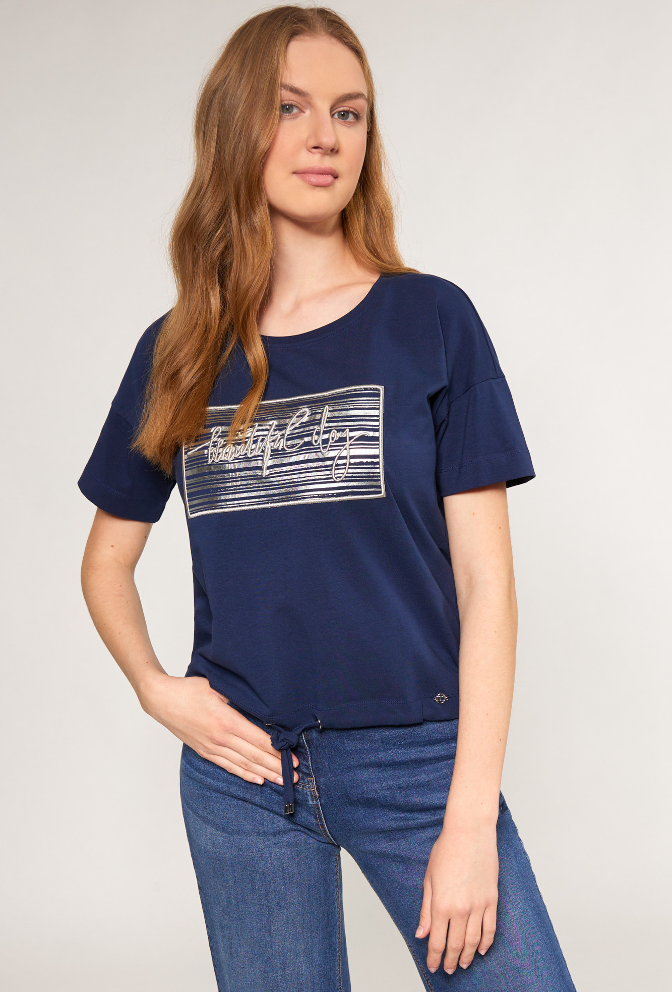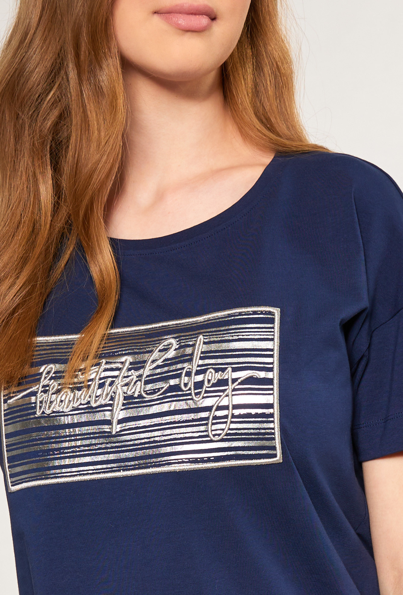 Dámské tričko s ozdobným panelem TSH0083-013 tmavě modrá - Monnari