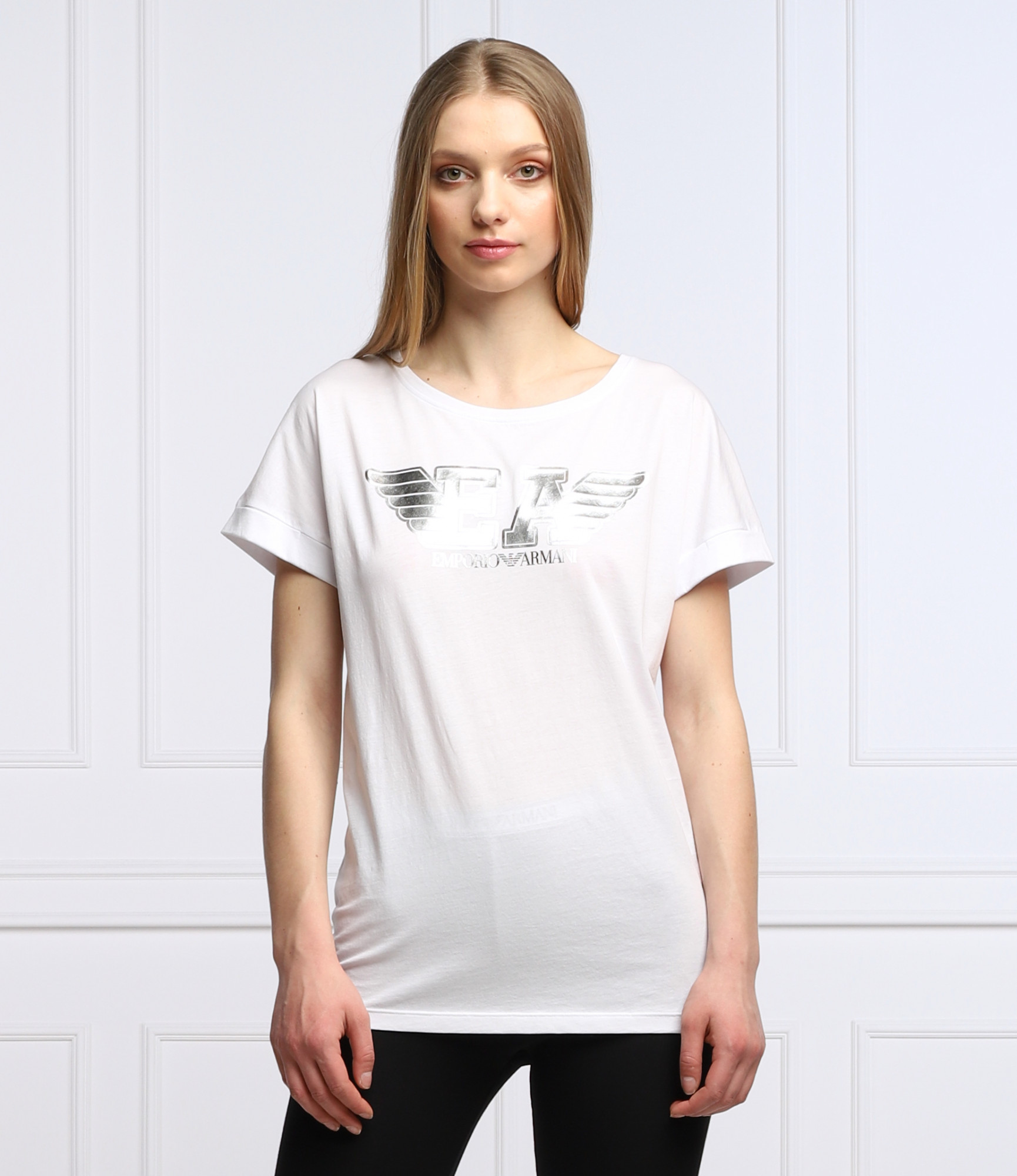 Produkt Dámské triko s krátkým rukávem - 164340 2R255 000110 - bílá - Emporio Armani prodáváme v těchto velikostech: L, Ma barvách bílá-potisk