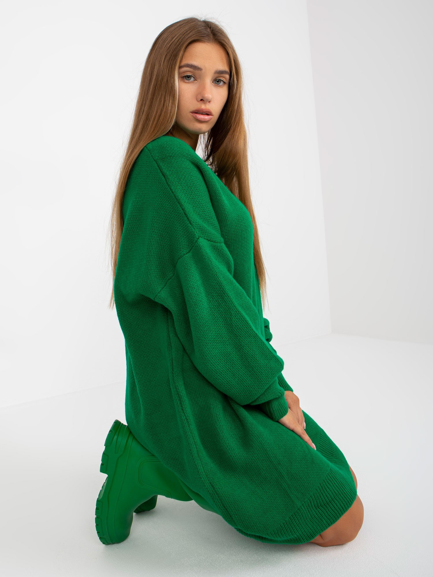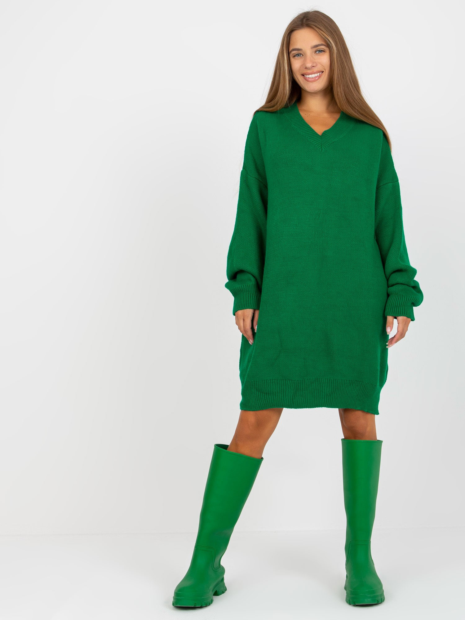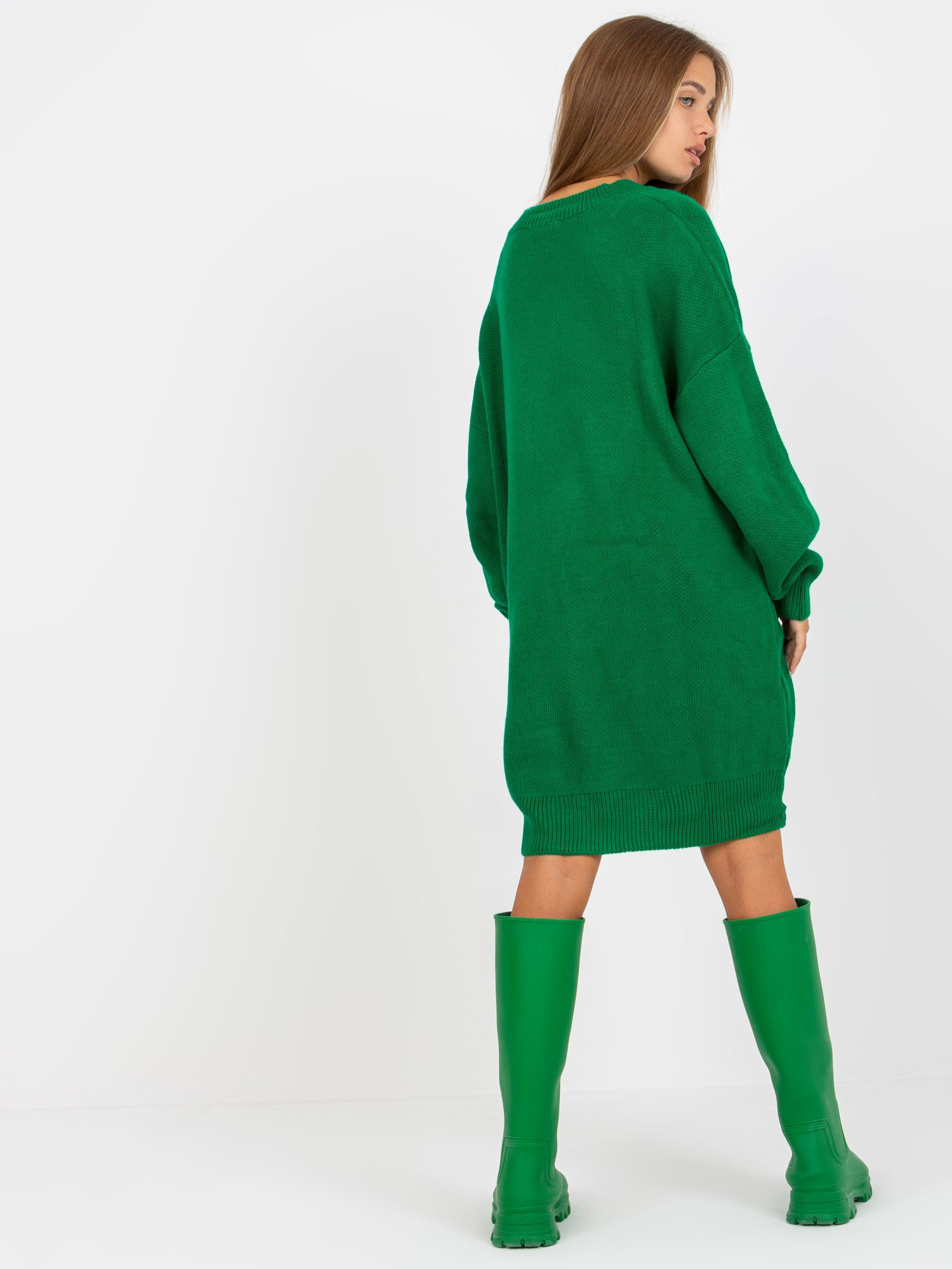 Dámské úpletové šaty LC SW 0341.38P Tmavě zelená - Rue Paris