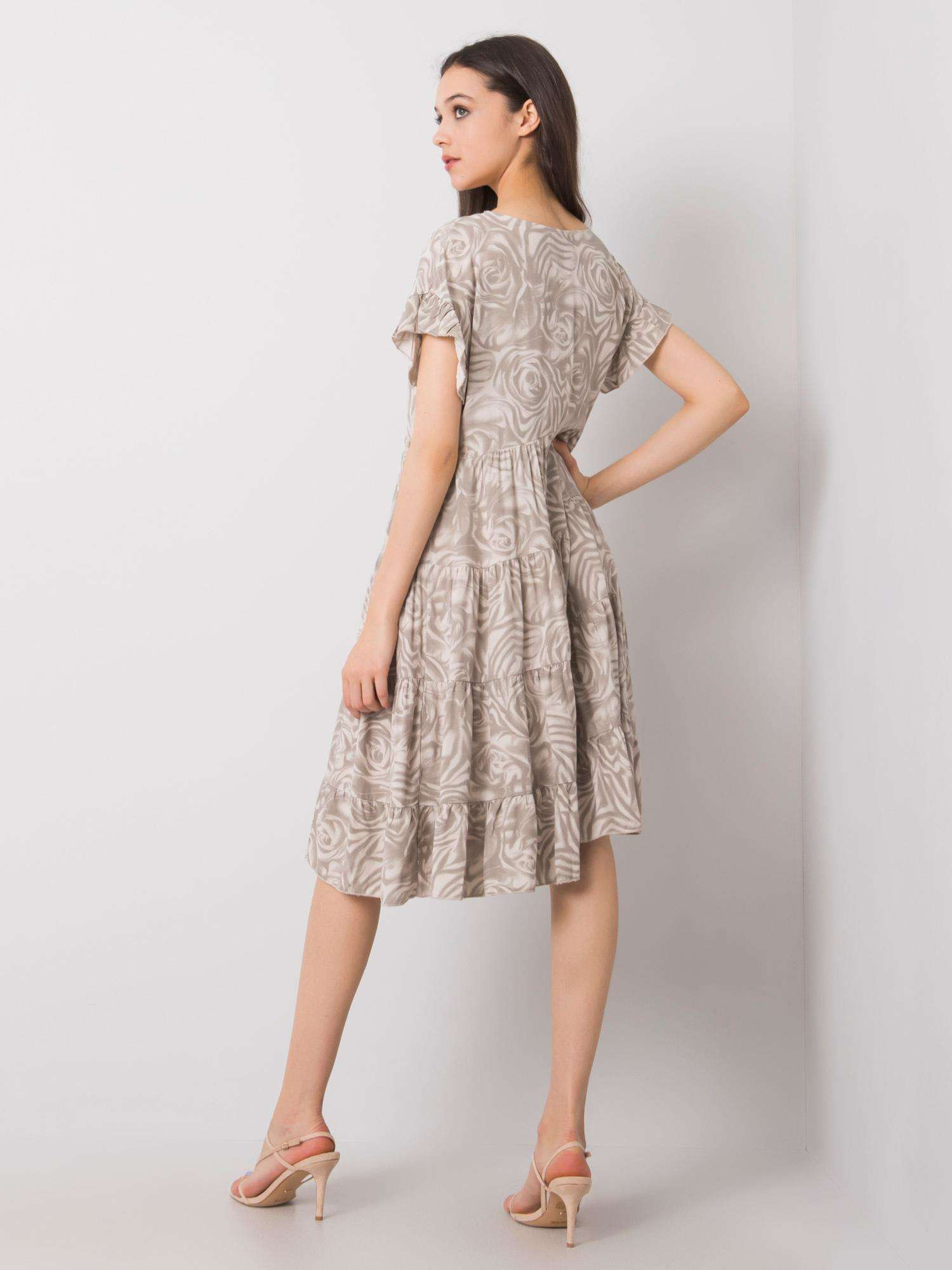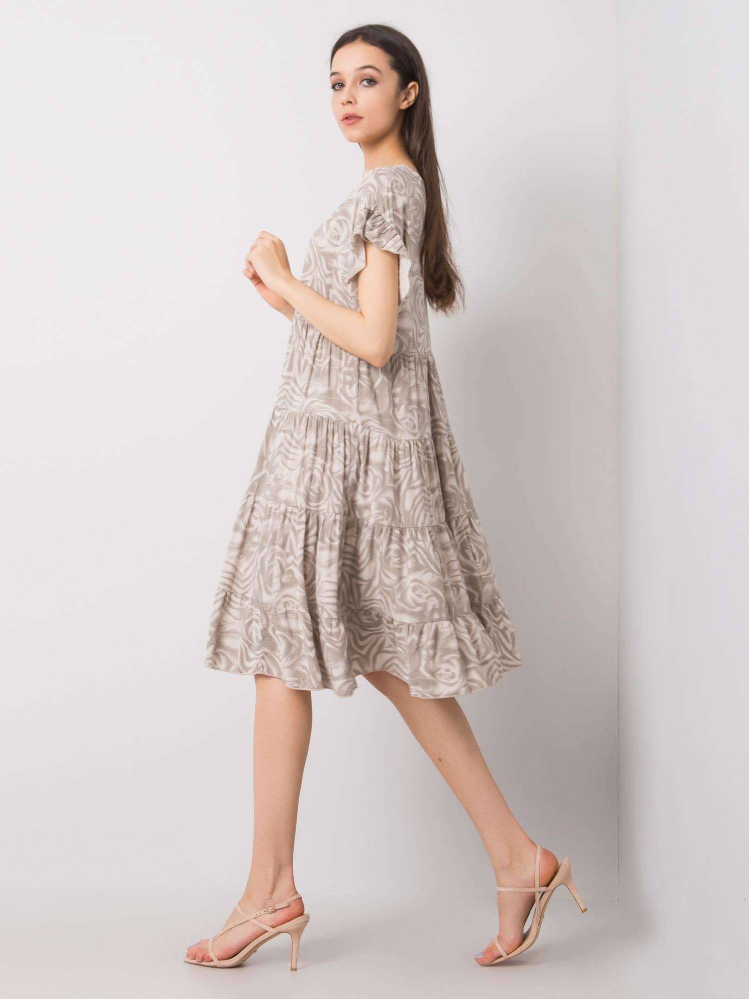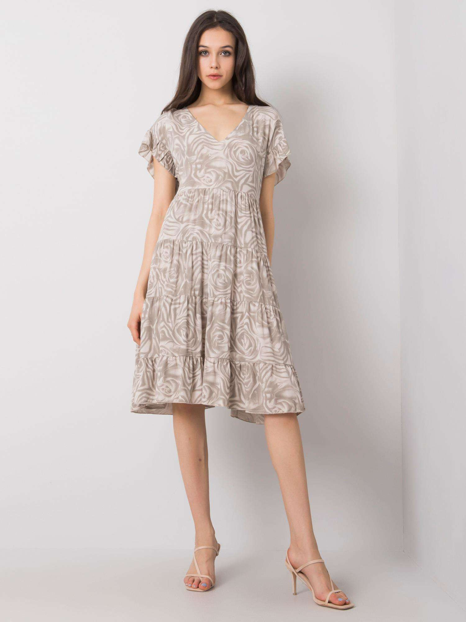 Produkt Dámské volné šaty s volánkem awd0465 - FPrice prodáváme v těchto velikostech: L-40a barvách béžová