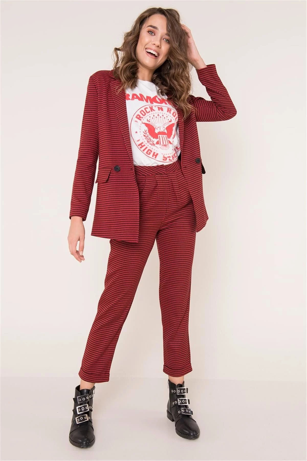 Dámské vzorované kalhoty 12586 Červená s černou - FPrice