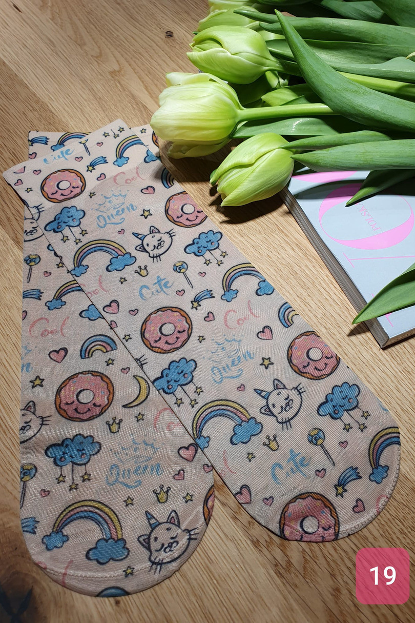 Produkt Dámské vzorované ponožky 19 - Magnetis prodáváme v těchto velikostech: 22-26cma barvách béžová-potisk