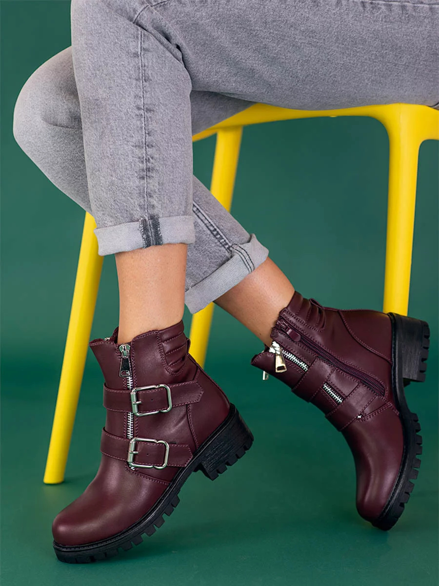 Produkt Dámské zateplené kotníkové boty na širokém podpatku BH2559 - Queen Tina prodáváme v těchto velikostech: 39a barvách vínová