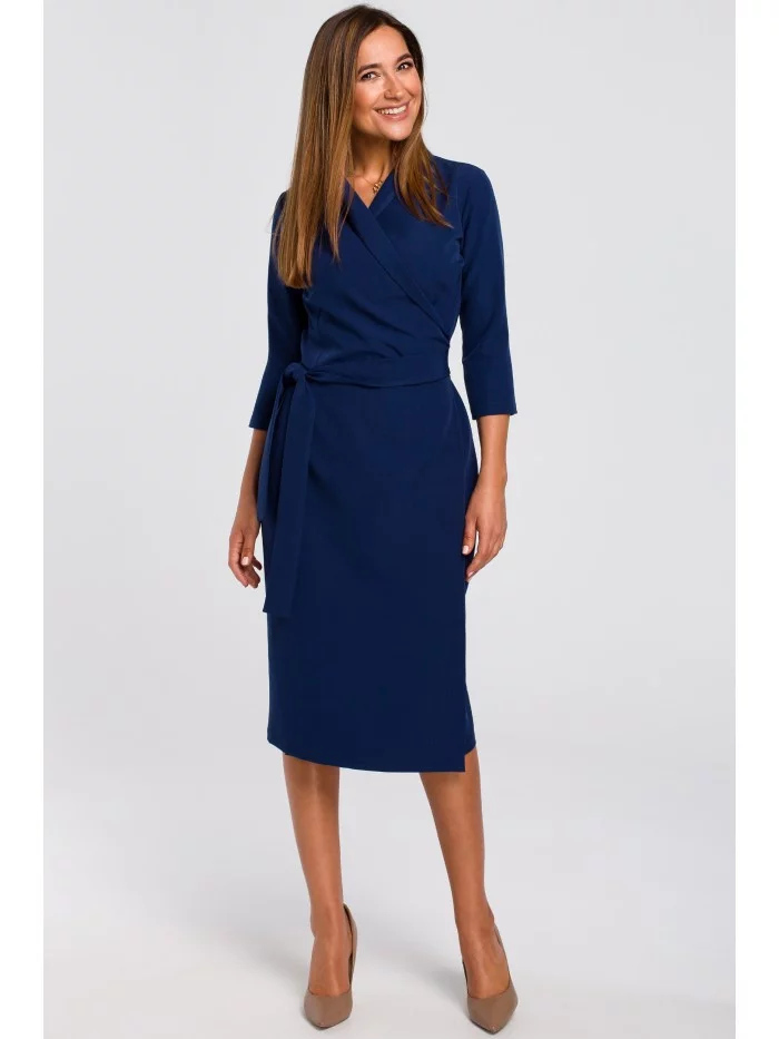 Dámské zavinovací šaty s vázáním S175 tmavě modré - Stylové