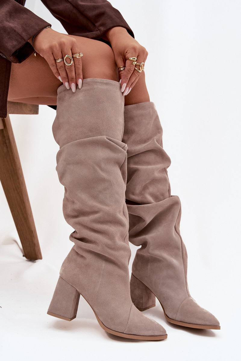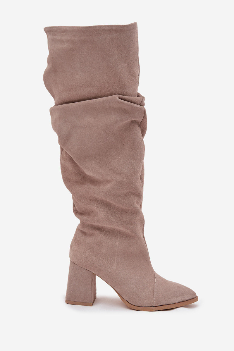 Dámské zmačkané kozačky na podpatku 4228 Béžová - Zazoo