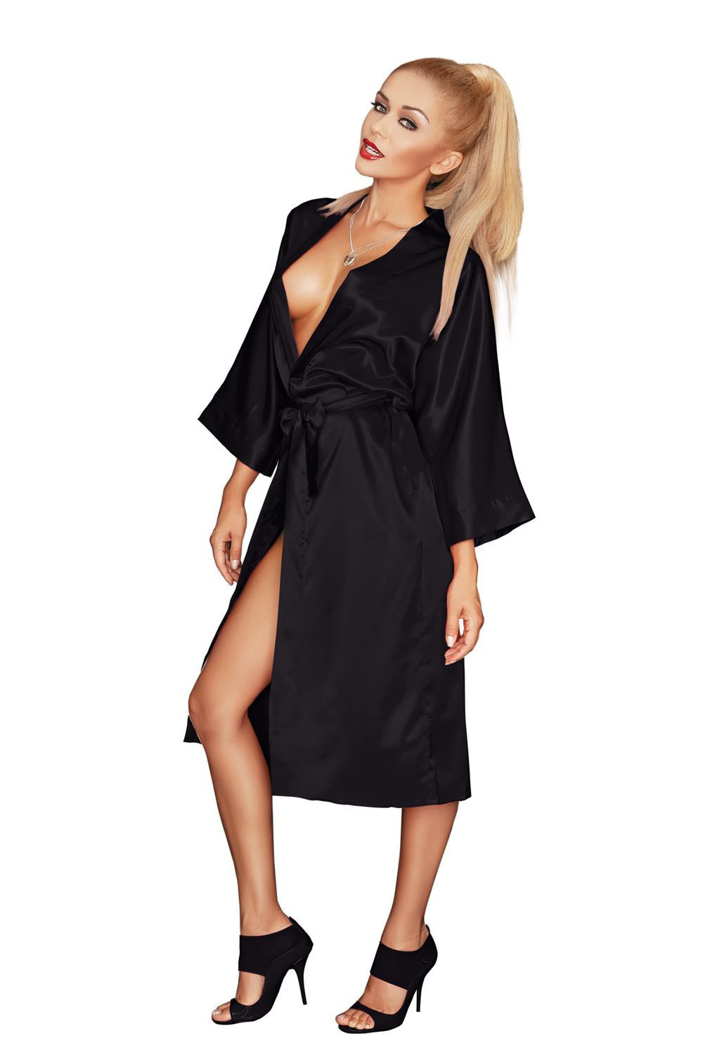 Přidání recenze k Dámský saténový dlouhý župan 115 černý - DKaren