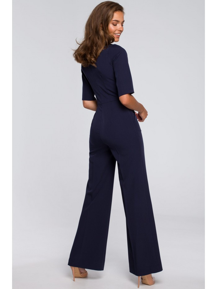 Dámský elegantní overal se zavazováním za krkem S243 tmavě modrý - Stylove