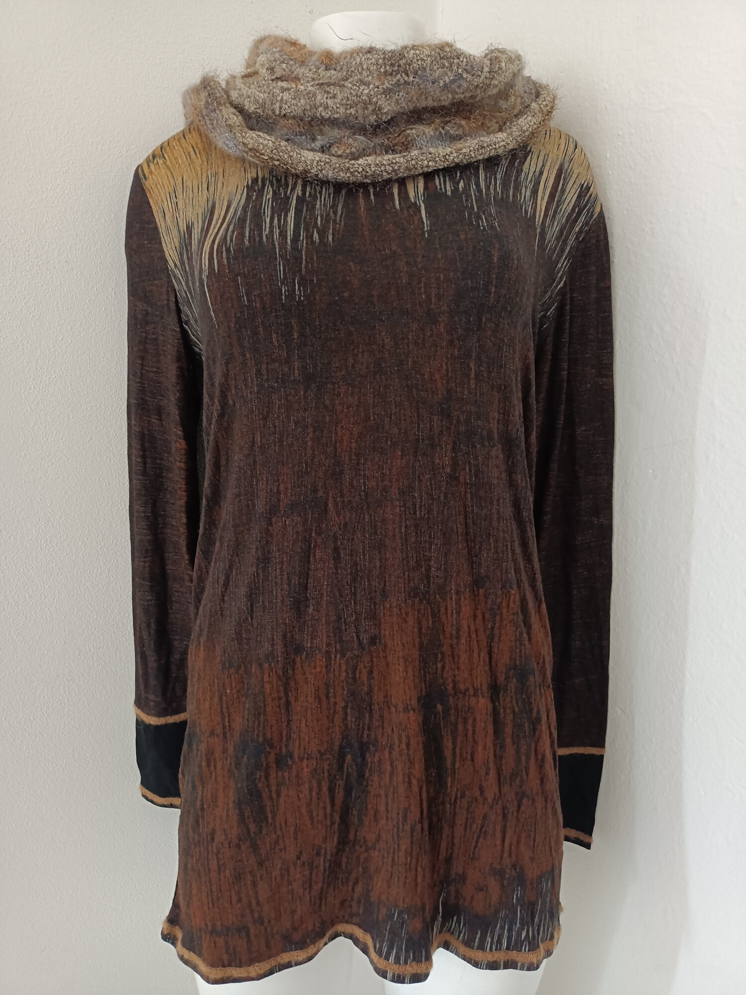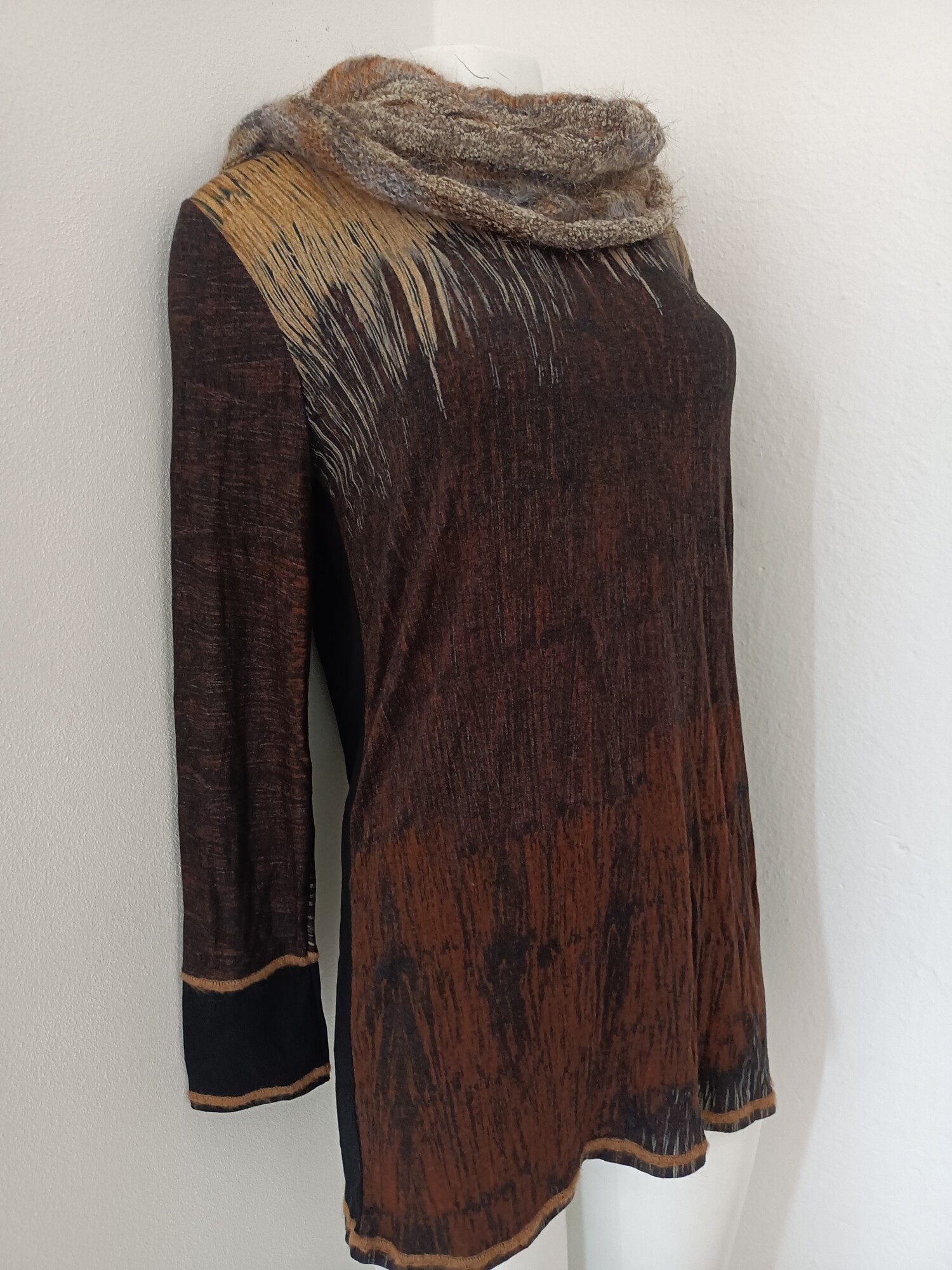 Produkt Dámský elegantní svetr R3387 - Roberto Naldi prodáváme v těchto velikostech: 42a barvách černo-hnědá