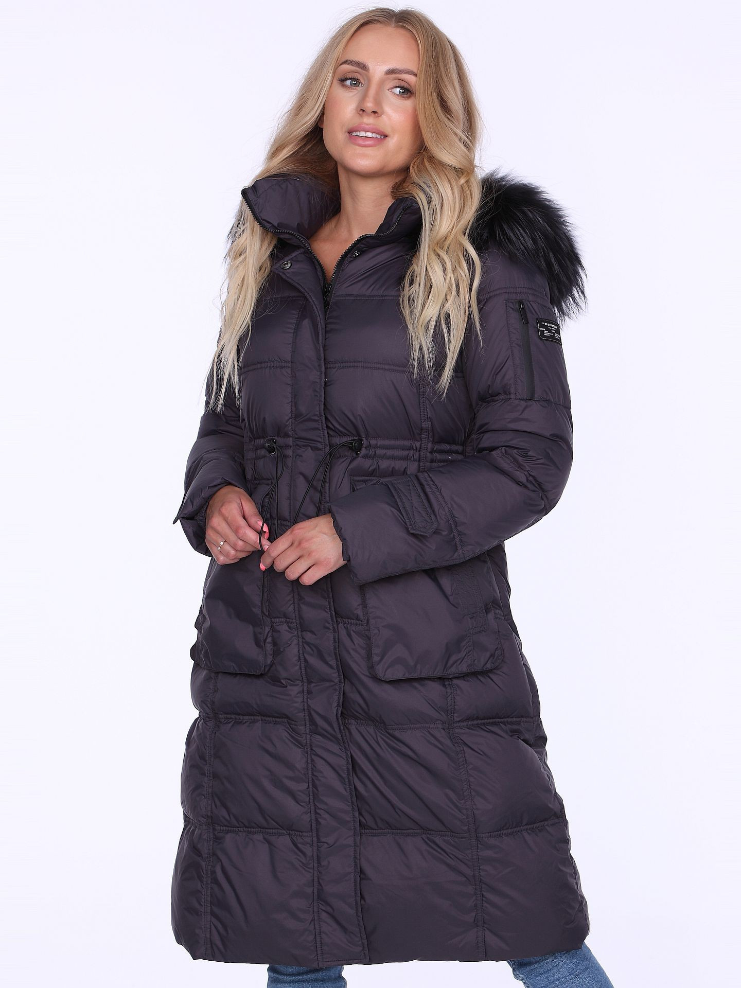 Dámský péřový zimní kabát s kapucí lemovanou přírodní kožešinou je skvělým řešením pro chladnou zimu. Výplň z kachního peří snadno vytvoří účinnou tepelnou bariéru a zahřeje vás již při prvním nošení. Kvintesencí výzdoby je lemování kapuce tmavě šedou kožešinou, která dokonale ladí s barvou svrchní látky.