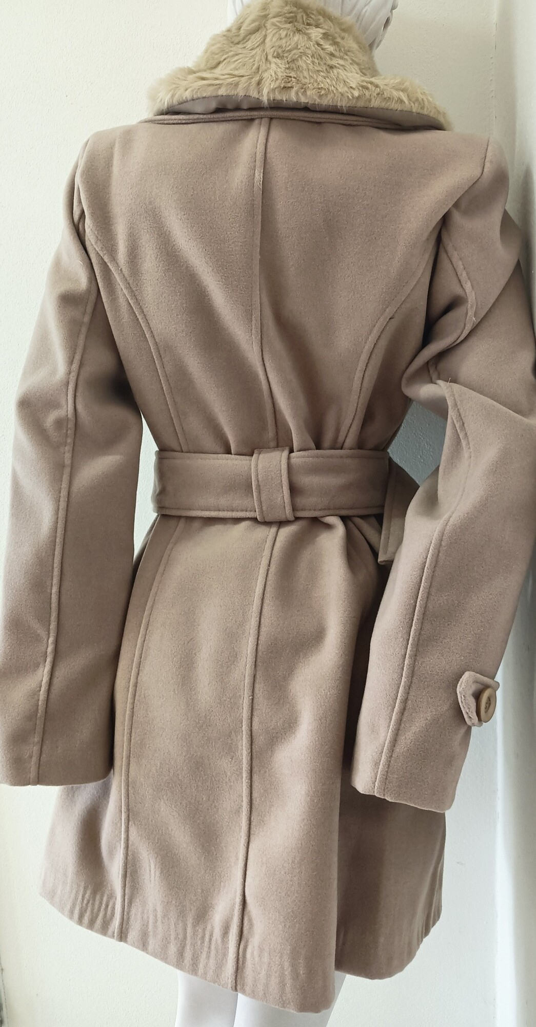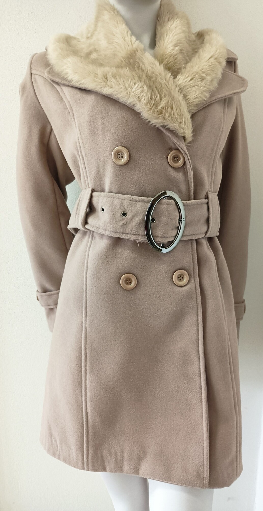 Dámský luxusní kabát se šálovým límcem a umělou kožešinou.