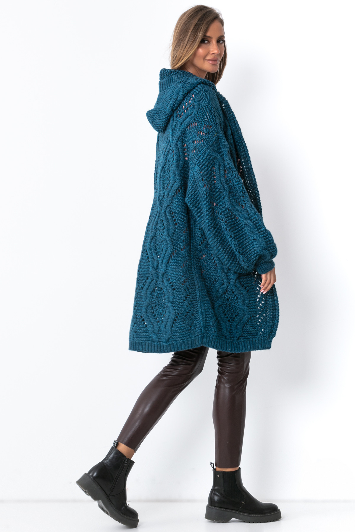 Hledáte nápad na módní letní oblečení, když je počasí spíše podzimní? Dlouhé, zajímavě zakončené svetry zaujímají ve vašem šatníku zvláštní místo?Podívejte se na náš svetr s dlouhými rukávy a kapucí s krásnou prolamovanou vazbou. Je to pohodlný svetr, který pěkně sedí na těle. Tento střih svetru se hodí k maxi šatům a letním kalhotám. Na podzim a v zimě ji noste přes halenky s dlouhými rukávy a roláky. Svetr má kapuci, která mu dodává sportovní charakter. Proto se skvěle hodí i k džínám a vhodným kalhotám. Vytvořte si jedinečné soupravy s teniskami, oxfordkami, kotníkovými botami a botami nad kolena. Dlouhý a pohodlný kardigan v jednom z pěti módních odstínů je nezbytnou součástí vašeho podzimního/zimního šatníku.