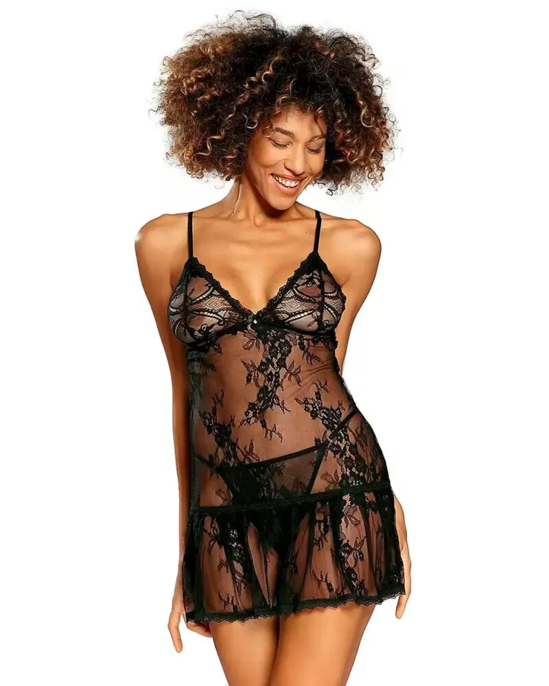 Produkt Dámský komplet košilka + tanga Anastazja Černá - DKaren prodáváme v těchto velikostech: XSa barvách černá