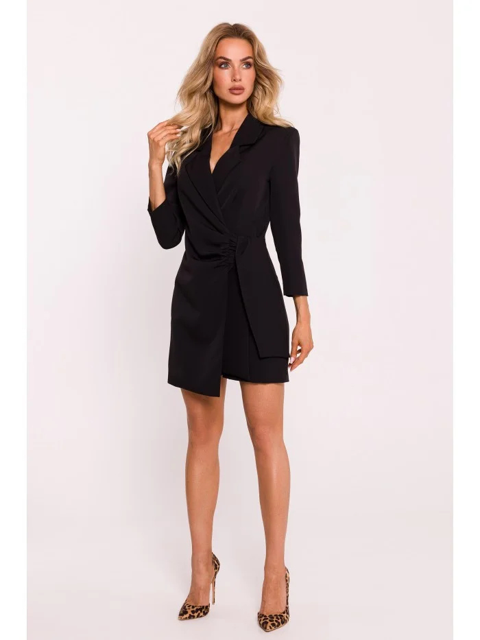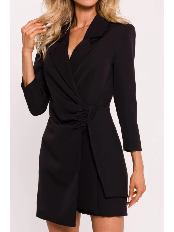 INFORMACE O PRODUKTU: tkaný kostým s límcem vázaným na boku skrytý boční zip uvnitř bez podšívky naše modelka je vysoká 171 cm a nosí velikost S navrženo a vyrobeno v Polsku