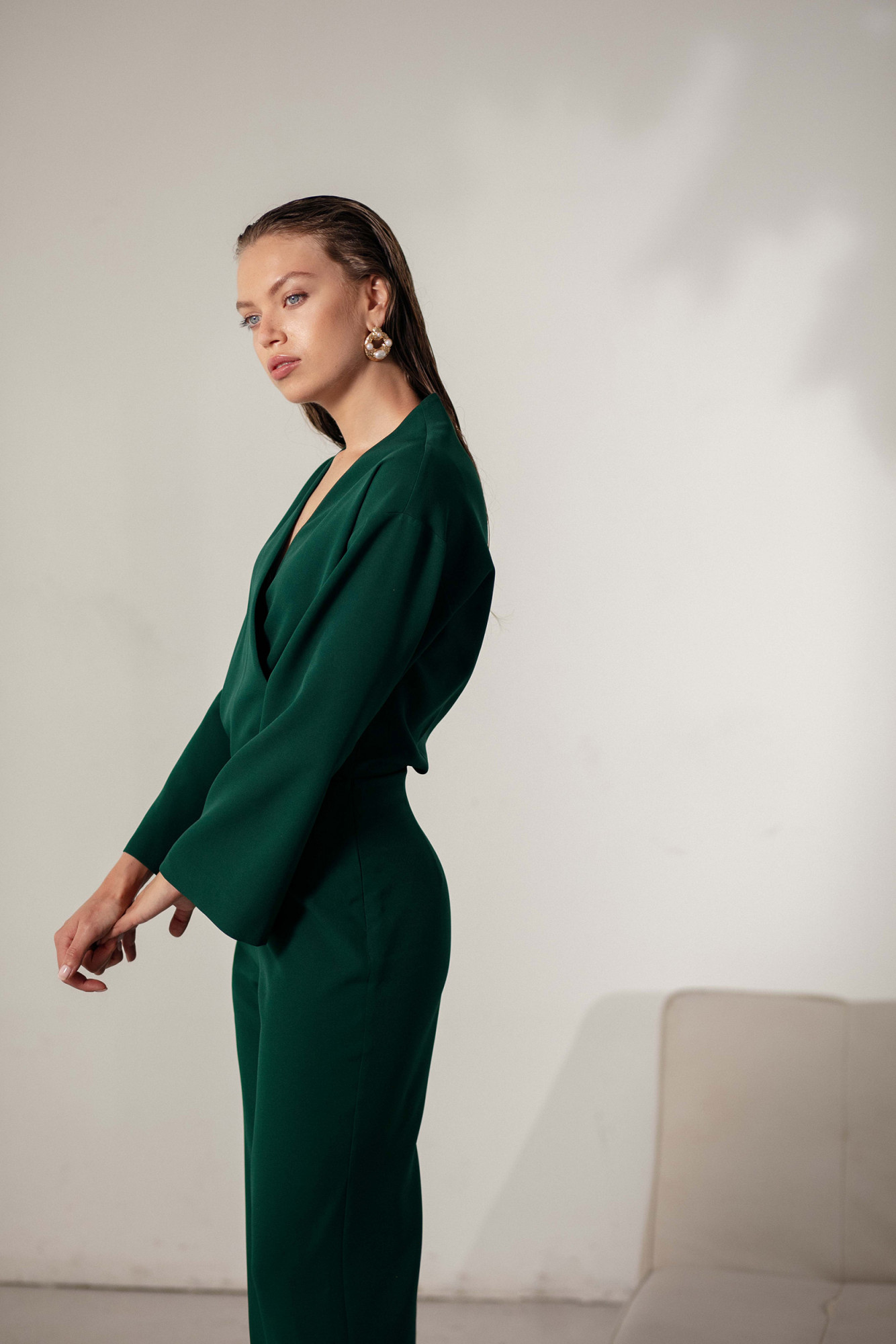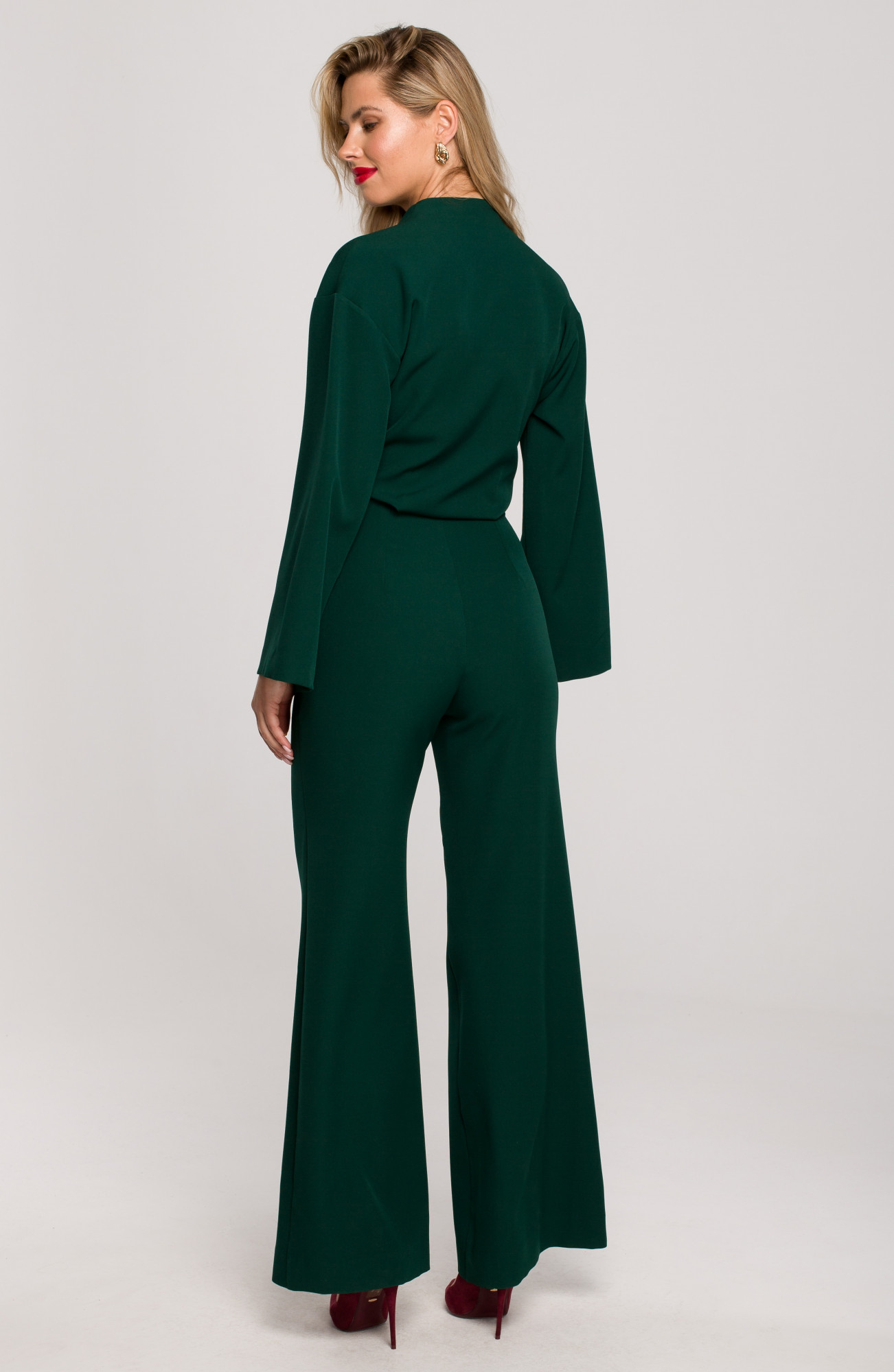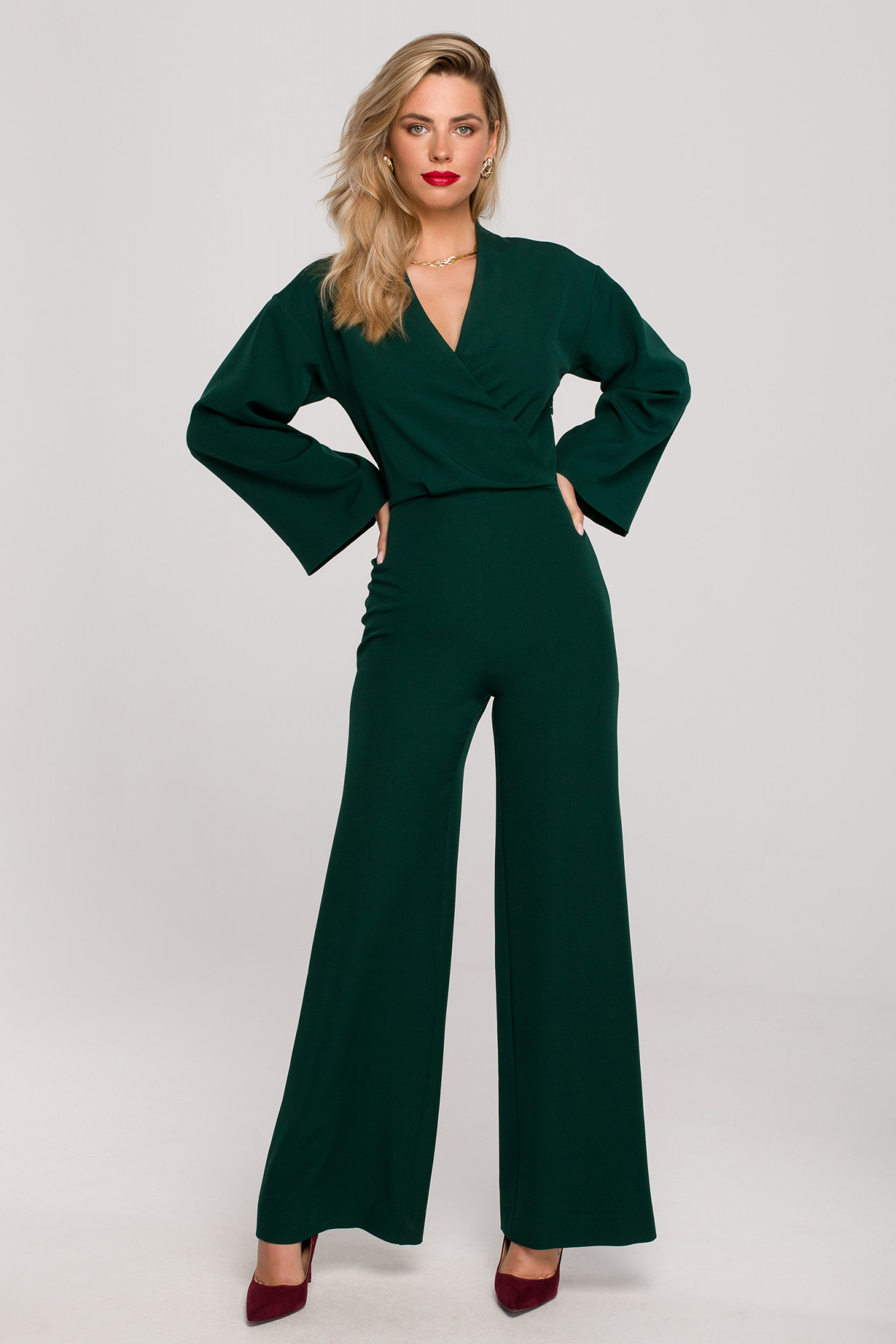 Není nic dokonalejšího než tento elegantní jednodílný overal. Se zavinovací halenkou, širokými rukávy a nohavicemi budou příjemnou alternativou večerních šatů.