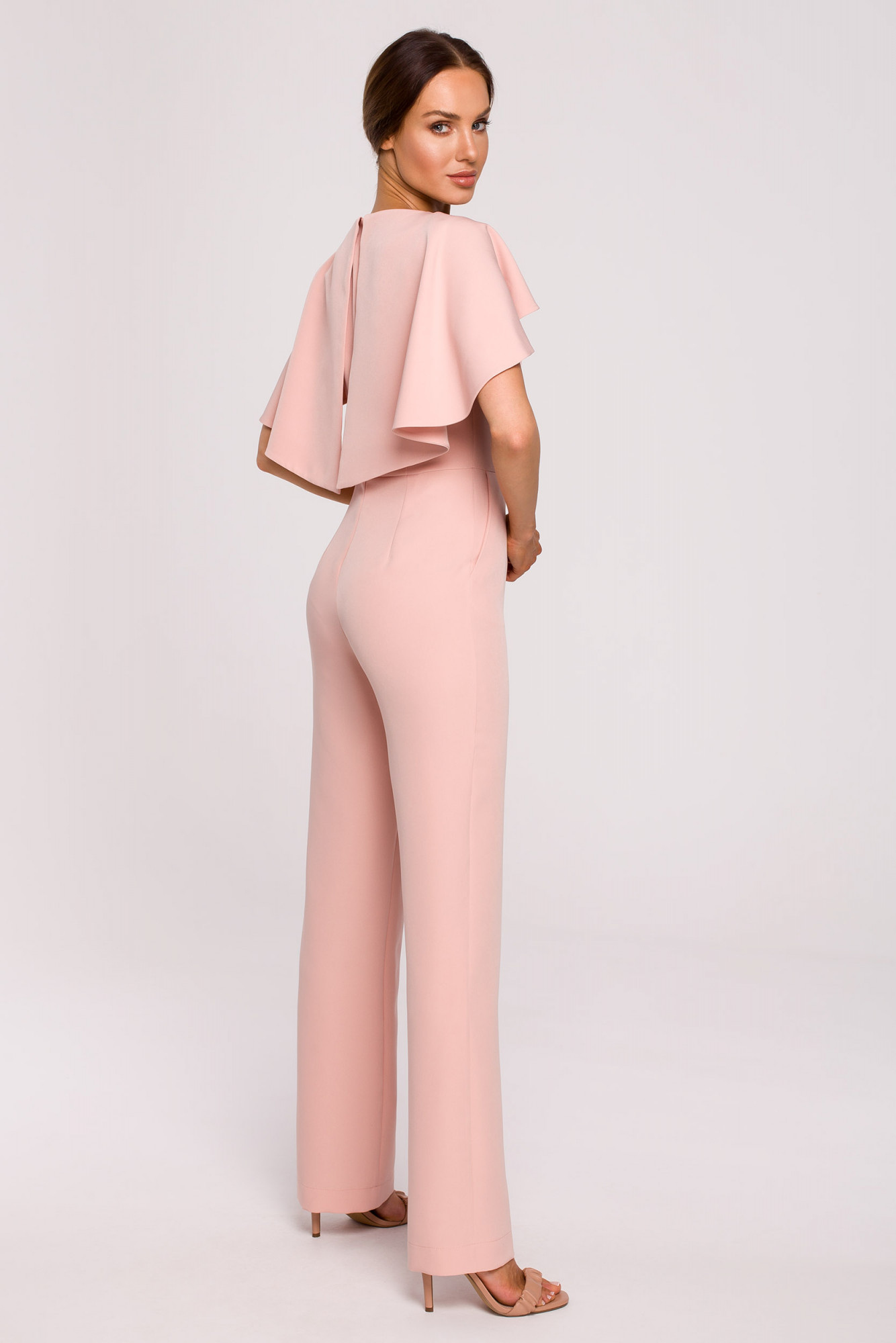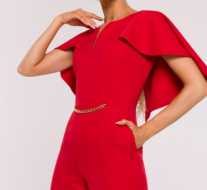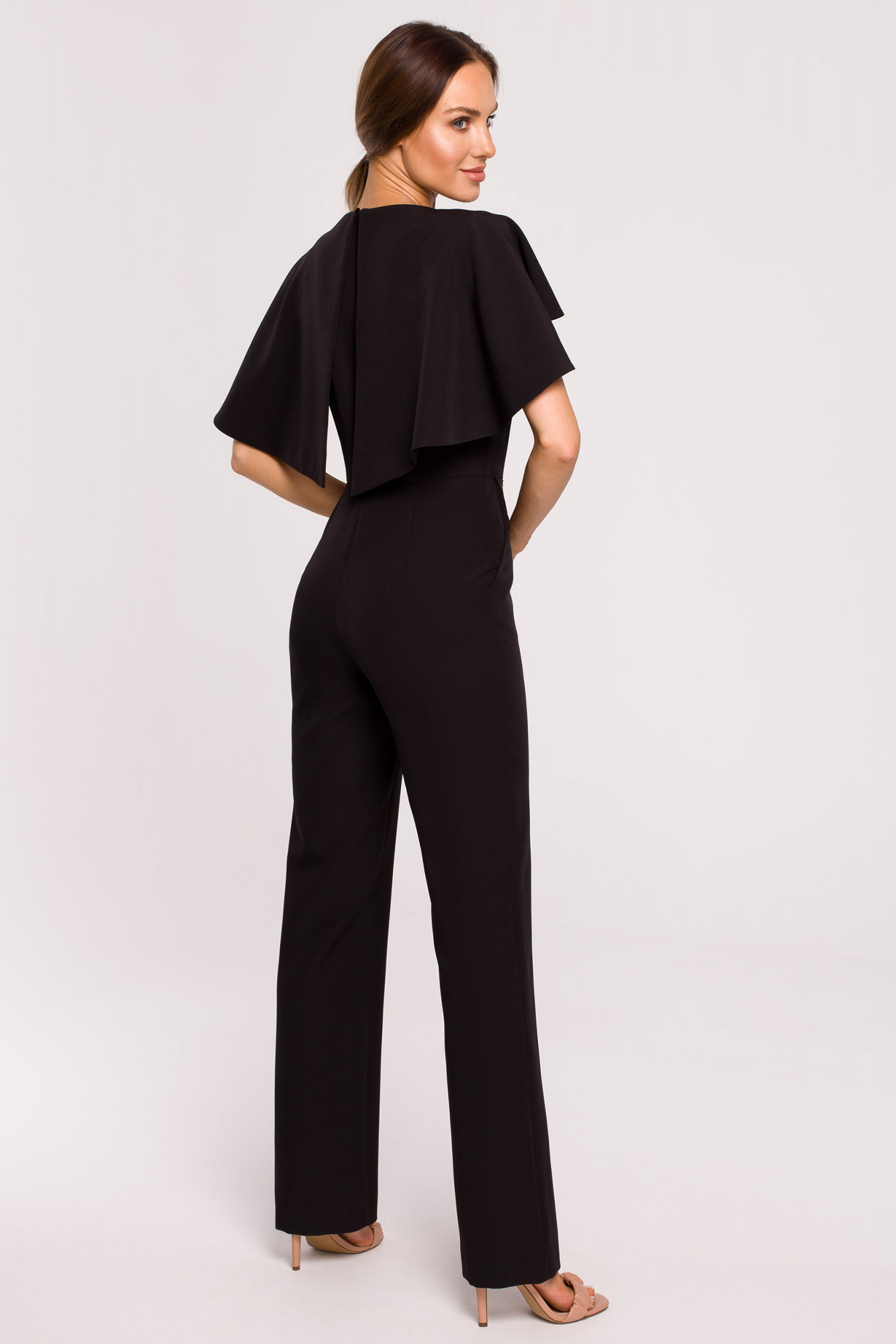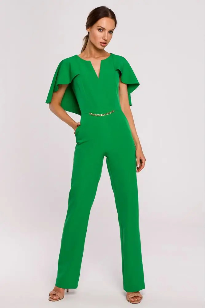 Tento overal z jednoho kusu s efektem pláštěnky na zádech a řetízkem vpředu určitě upoutá pozornost. Naše modelka měří 171 cm a nosí velikost S.